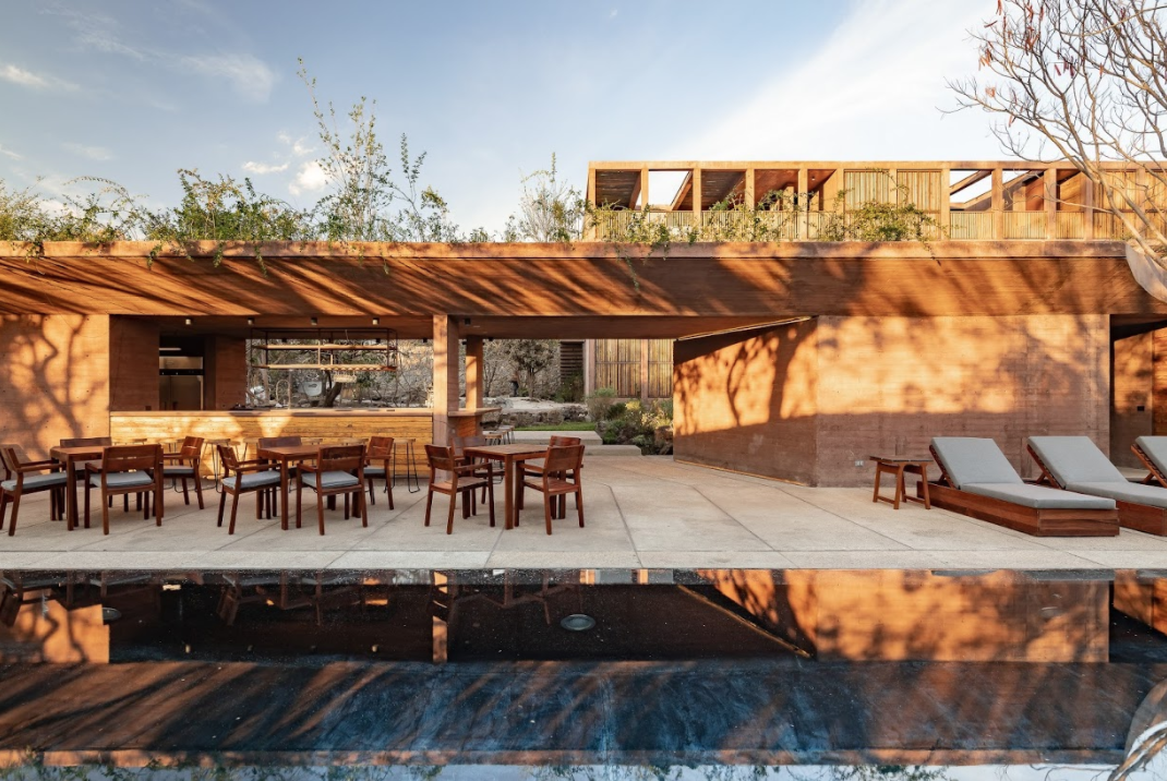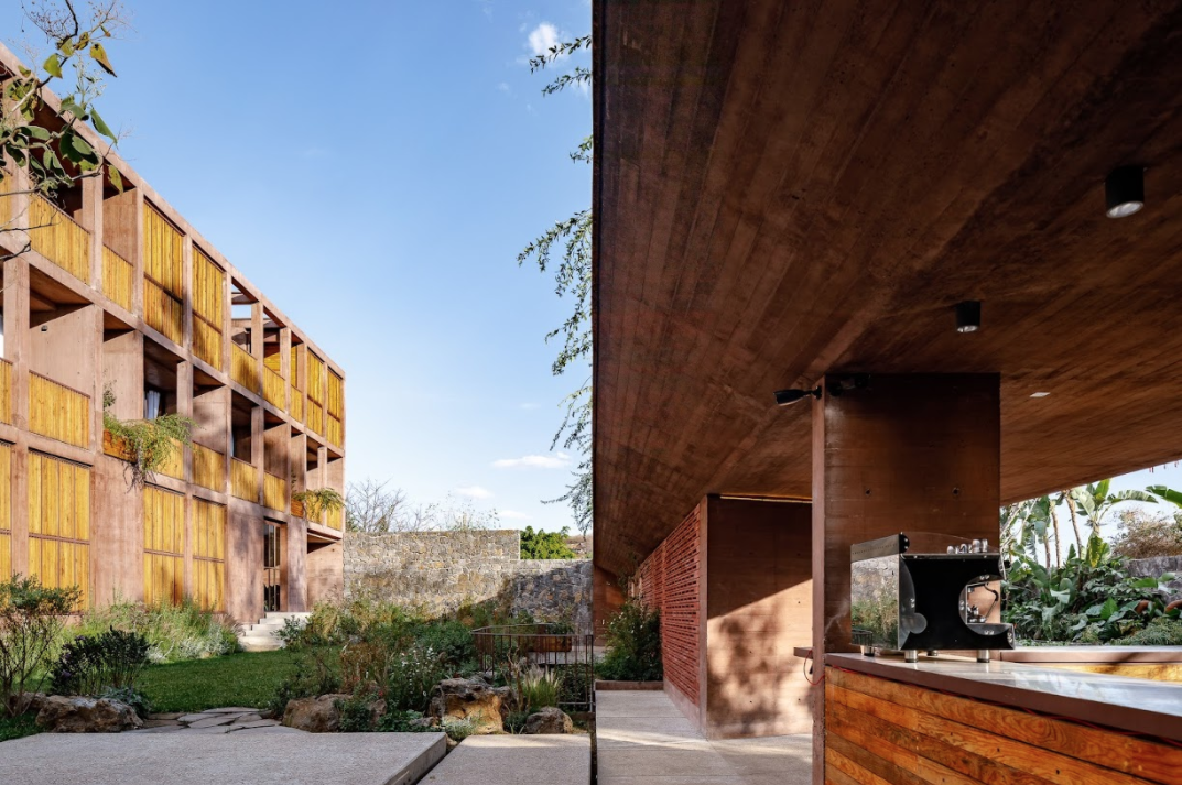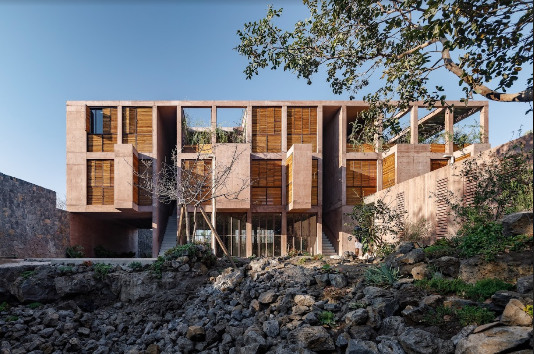 En un lote de 2.636 metros cuadrados, en Tepoztlán, México, las oficinas Taller Carlos Marín y Pasquinel Studio diseñaron un hotel instalado en medio de un paisaje rocoso y una vegetación exuberante. El proyecto, de cuatro volúmenes independientes, vinculados unos con otros a través de zonas a cielo abierto, se disemina sobre el terreno.