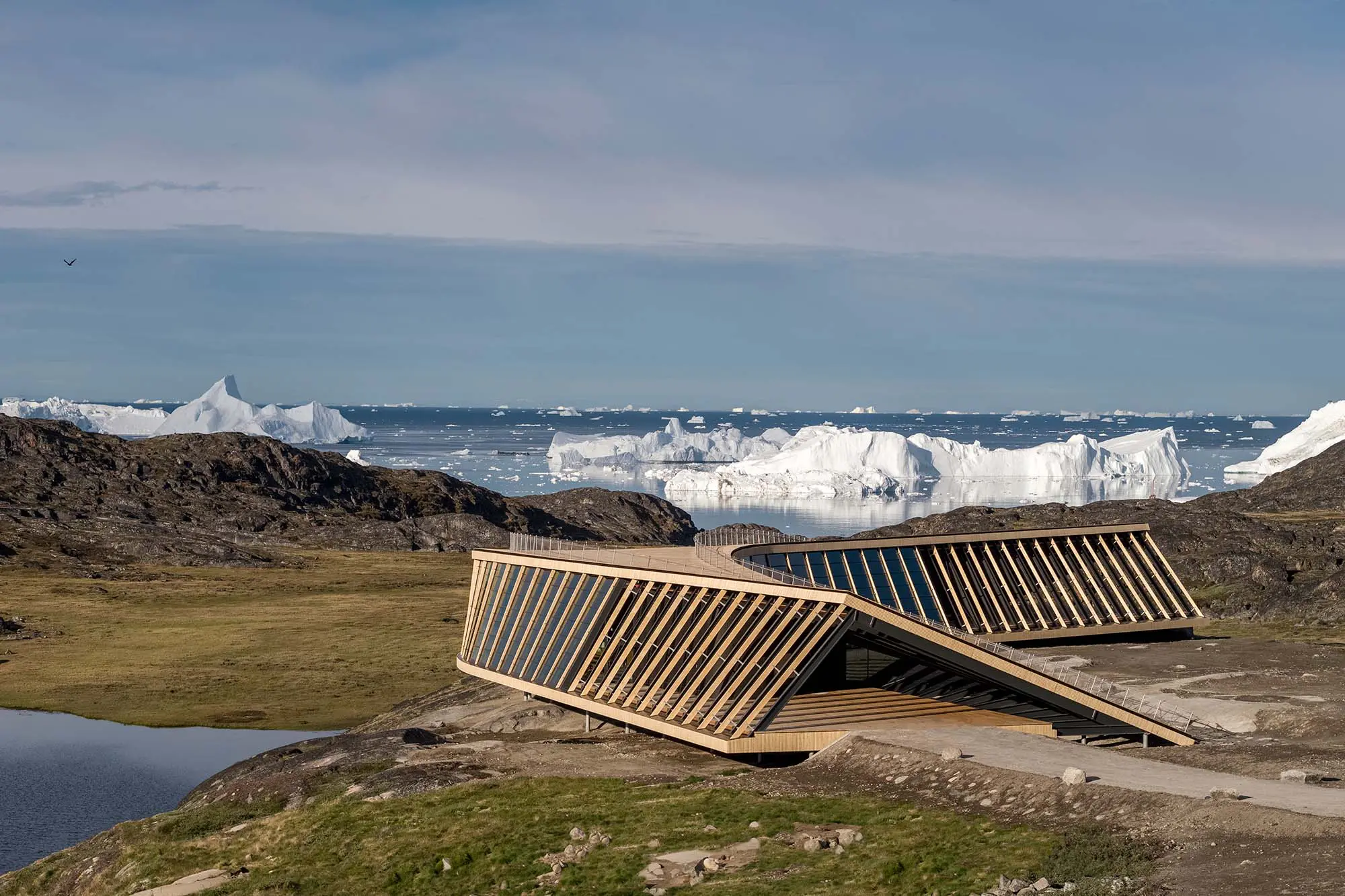 El Ilulissat Icefjord Centre, con 900 metros cuadrados de área, es un edificio de carácter cultural y pedagógico donde se combinan el arte y la ciencia, con el fin de promover la importancia de los casquetes glaciares.