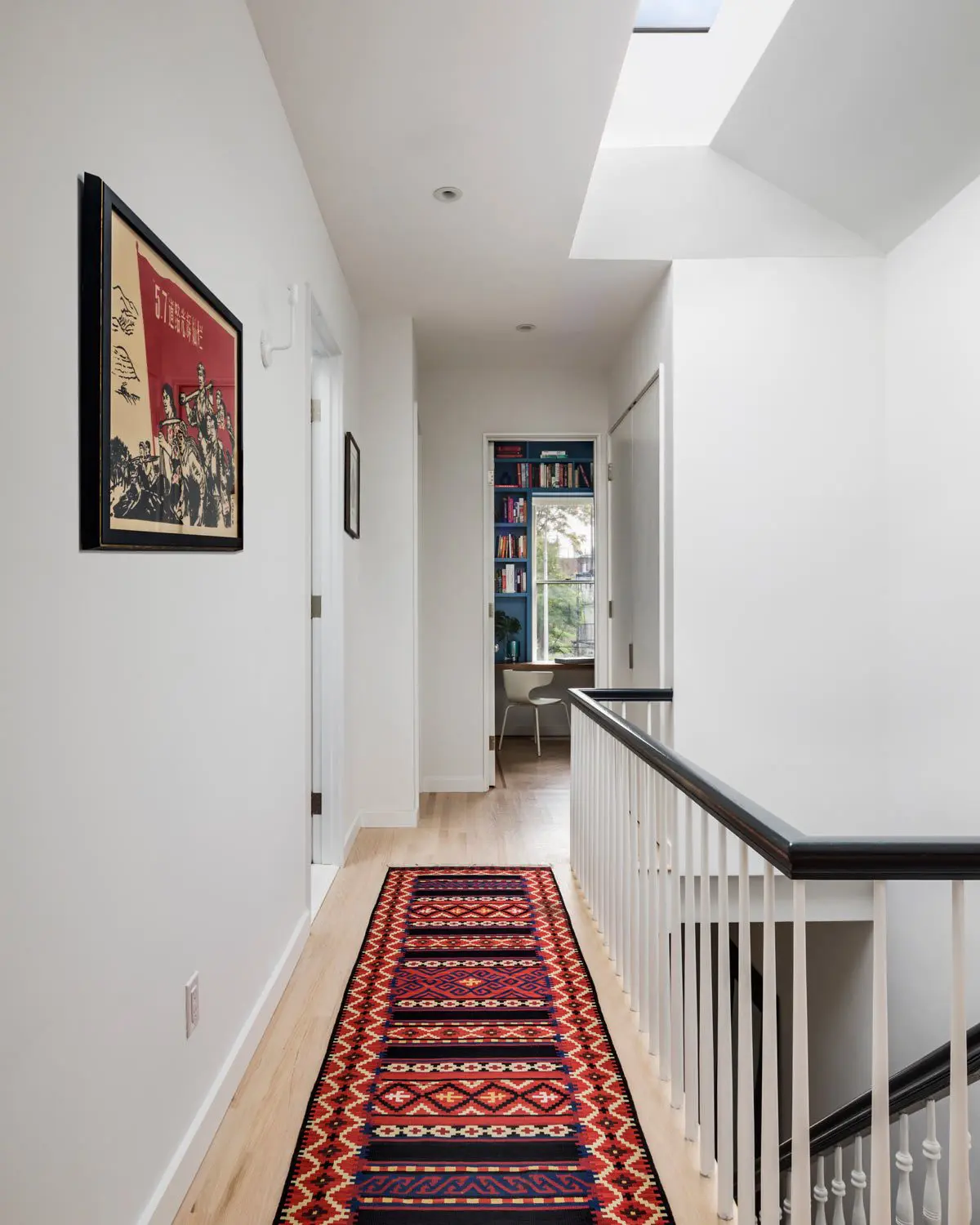 La escalera existente se amplió en el segundo piso para permitir que la luz