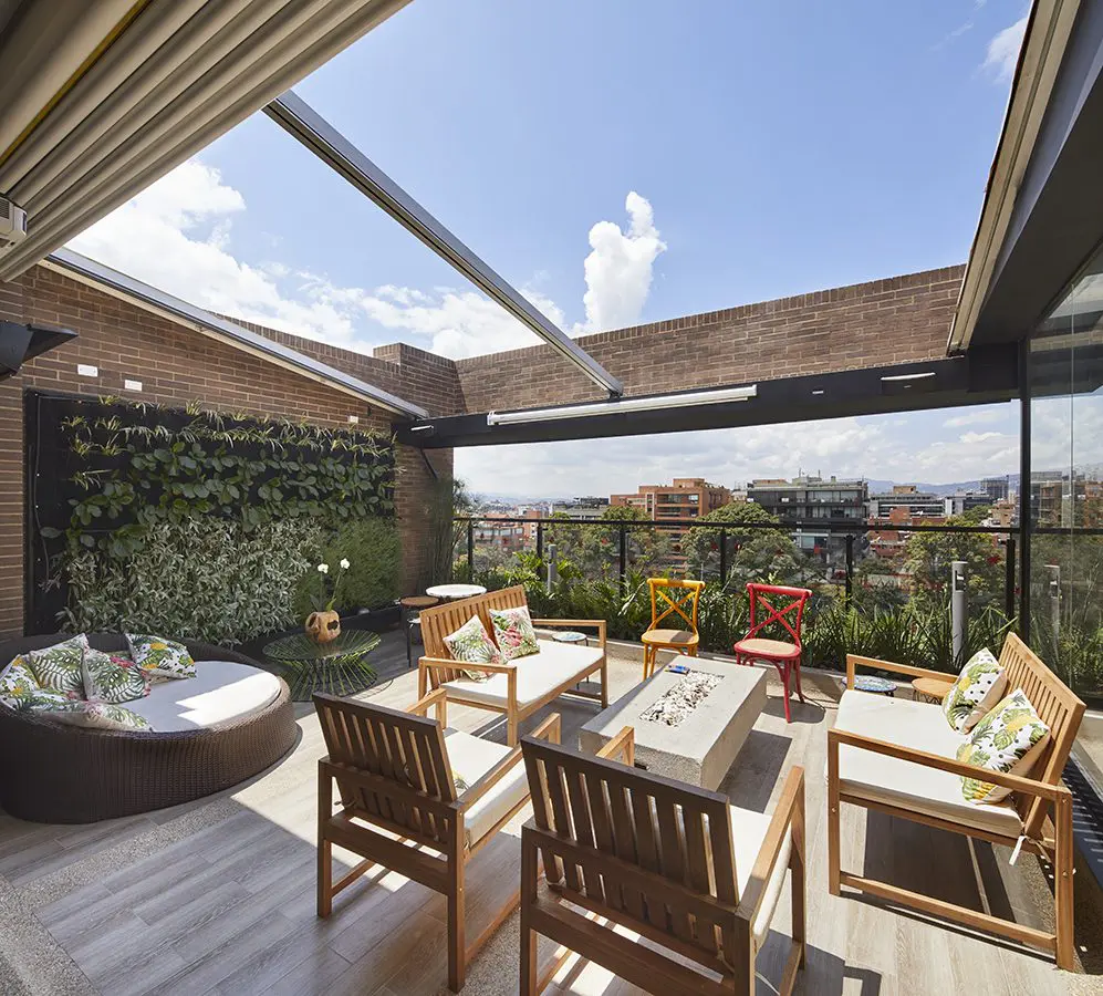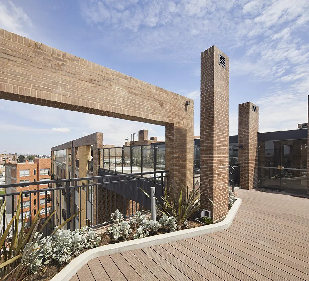 El edificio alberga 55 apartamentos, todos únicos y diferentes, y servicios comunes como un business center, gimnasio, jacuzzi, piscina climatizada y un área para la práctica de yoga. Los jardines colgantes que embellecen las circulaciones interiores, no solo cumplen la función de incorporar la naturaleza a las áreas privadas, sino también la de potenciar los vacíos/termochimeneas interiores, asistir la ventilación natural de las viviendas y purificar el aire. “Mi obsesión ha sido siempre no utilizar agua potable para los sanitarios”, comenta el arquitecto, razón por la cual Kubik Virrey I y II cuenta con un mecanismo de recolección de aguas lluvias y de recirculación de las grises –provenientes de duchas y lavamanos, que pueden ser fácilmente filtradas y tratadas para usarse de nuevo–. Con esto suplen los requerimientos de los sanitarios, los cuales, al igual que las griferías de duchas, lavamanos y lavaplatos, se especificaron de bajo consumo. “Los sistemas hidrosanitarios elegidos proveen un ahorro superior al 50 % con respecto a los tradicionales”, explica César Ruiz, CEO de Setri Sustentabilidad, quien acompañó el proceso de diseño y contratación para obtener la certificación LEED. El objetivo: limitar el gasto del recurso hídrico al máximo sin sacrificar el confort.