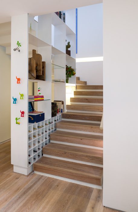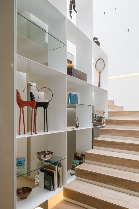Siempre tuvieron claro que la escalera que une los tres niveles –de un área construida de 400 metros cuadrados– no debía ser una mera zona de tránsito, sino una experiencia vital.