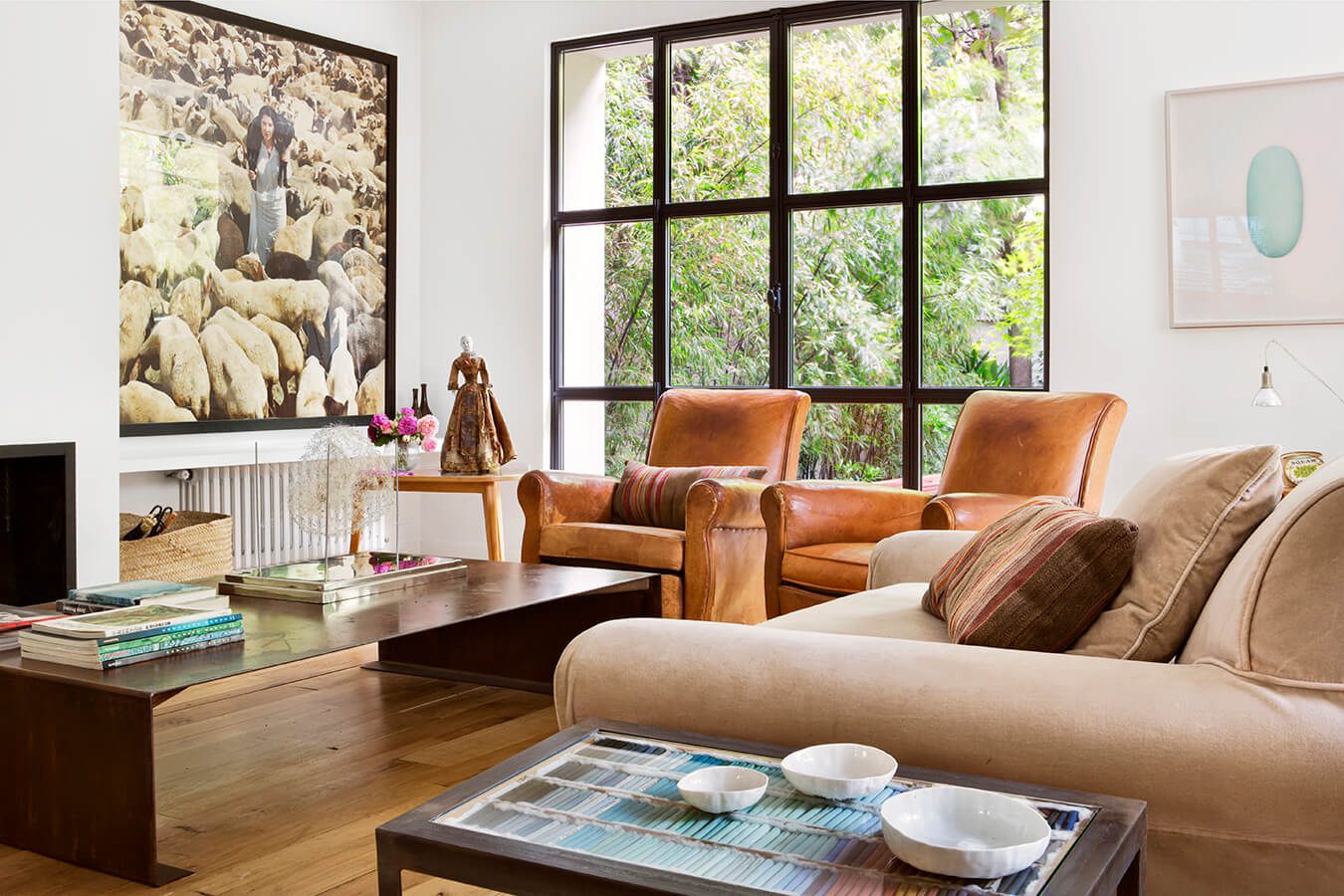 Esta casa en Madrid es un lugar pensado para compartir –tanto adultos como niños–. Es el hogar de un matrimonio formado por una paisajista parisina y un productor de vinos español, junto a sus tres hijos: dos chicos adolescentes y una niña.  Ubicada en una colonia madrileña, la vivienda está inspirada en el modelo de ciudad-jardín de sir Ebenezer Howard (1850-1928), urbanista británico cuyo sistema consiste en una comunidad establecida en un entorno natural separado de la gran urbe, pero muy bien comunicado con esta por diversos medios –como el tren, por ejemplo–. Este hogar, pensado para los momentos familiares y con amigos, está distribuido en tres plantas muy bien definidas: la inferior, dedicada a la vida social, con el salón, el comedor y la cocina –además, tiene acceso directo al exterior–; la superior, el territorio de los niños, y por último el ático, que aunque lo idearon como un espacio reservado para los adultos, termina invadido por la familia en pleno.