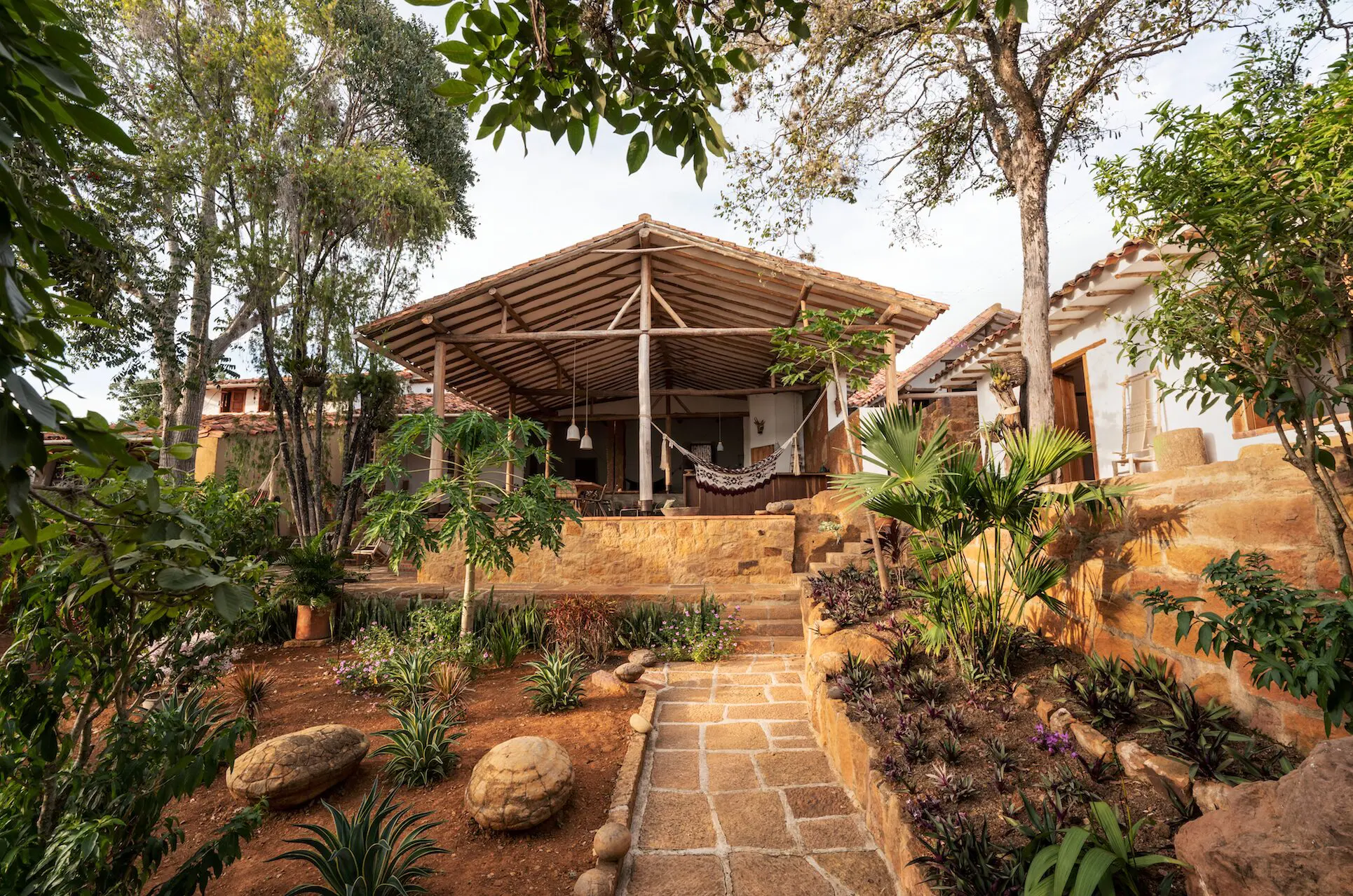 La arquitectura tropical es abierta y sus límites son imprecisos. Cuando las empresarias de la moda Mariel Gamboa e Yvonne Sporre conocieron Barichara, se enamoraron de la historia del municipio y de su arquitectura artesanal, donde se ven las manos de quienes la construyen en la piedra de sus pisos y la tapia de sus muros. Decidieron entonces comprar una propiedad de más de 130 años de construida y reformarla.