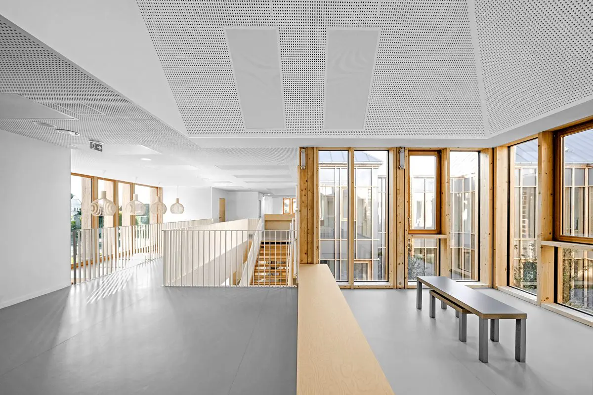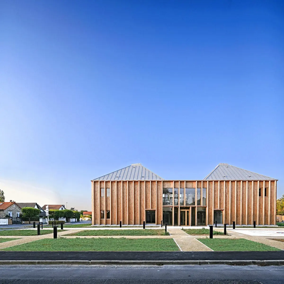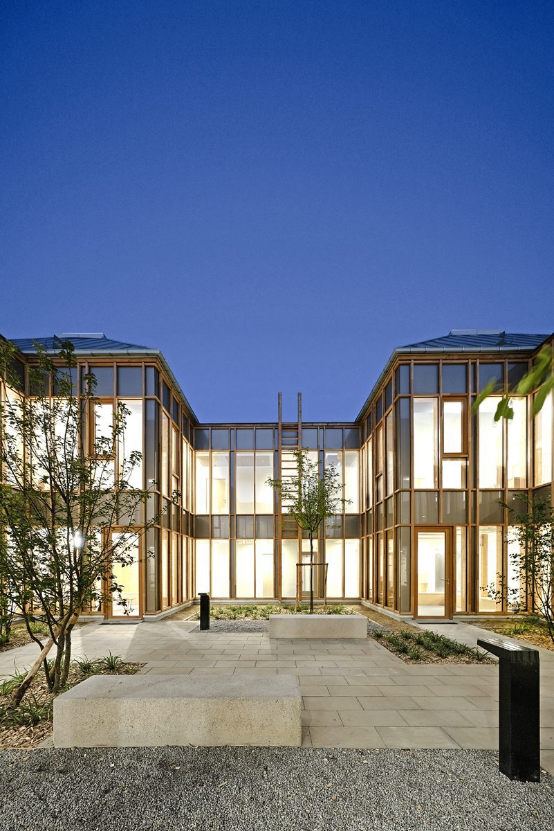La firma MAAJ Architectes, con sede en París, fue seleccionada para el diseño del centro médico inaugurado este año en Taverny, Francia. El edificio, planteado como una construcción de patio central, busca aislarse de las vías que circundan su emplazamiento.