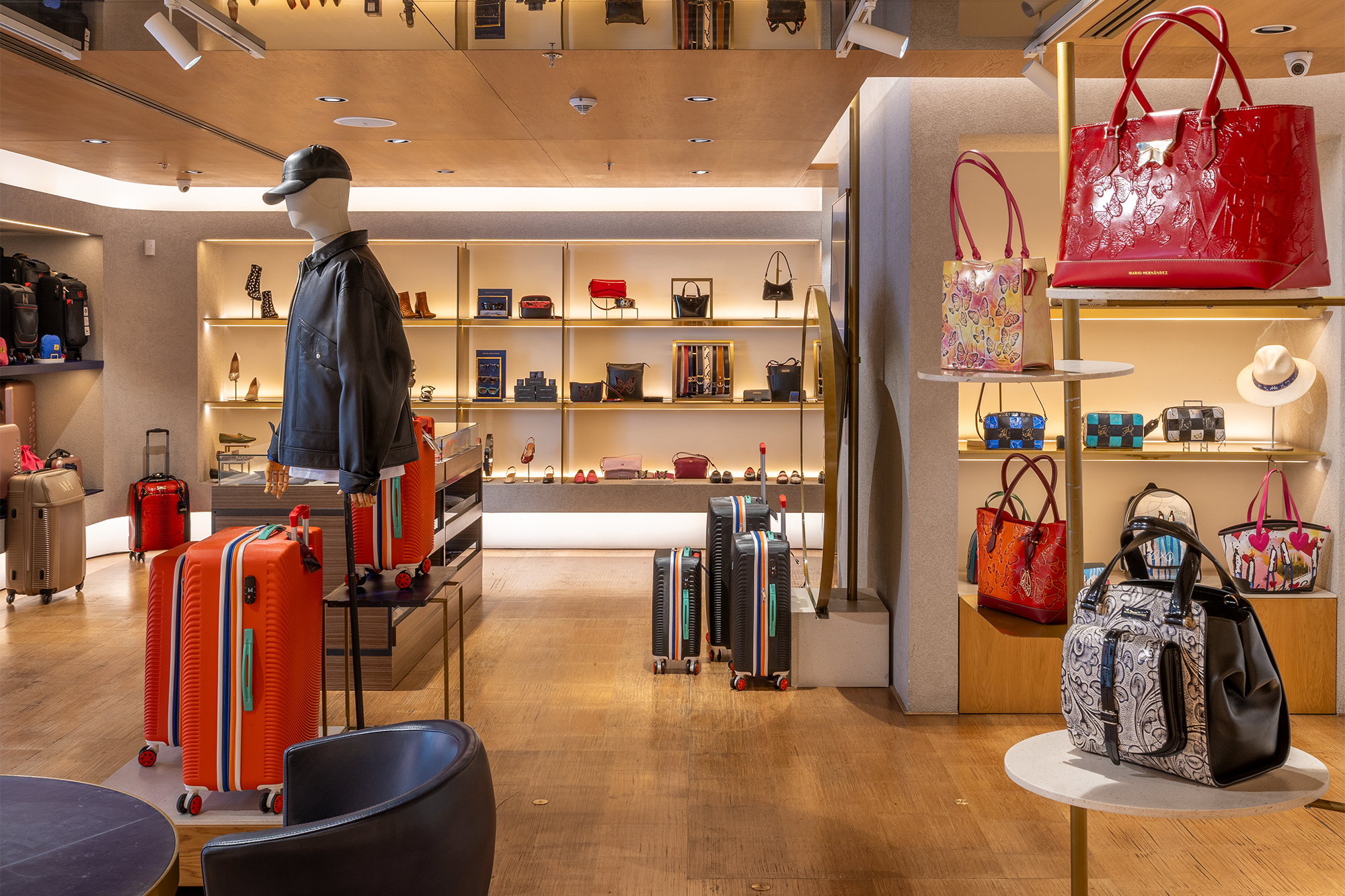 Un poco más de cien metros cuadrados constituyen este espacio que, por diferentes motivos, se considera la tienda más icónica de la marca colombiana Mario Hernández. Está ubicada en la calle de la Cultura, que es como se le llama al corredor exterior del centro comercial Andino, en Bogotá, y se caracteriza por combinar lujo, gastronomía y cultura.