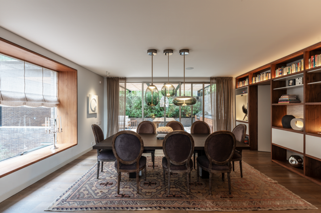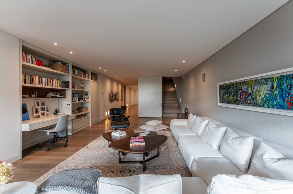 En el norte de Bogotá, en un edificio diseñado por el arquitecto Luis Restrepo se encuentra este apartamento, remodelado por la arquitecta e interiorista Ángela Crane. Para los propietarios, su hogar debía estar fuertemente ligado con las actuales dinámicas familiares. El proyecto surgió así como un ejercicio de adaptación a los cambios en la vida de sus habitantes con el paso de los años. “Antes se necesitaba un mayor número de espacios, ahora menos y más amplios. Por eso buscamos que la distribución respondiera a las nuevas necesidades de los dueños”, comenta Crane. La vivienda disponía de cuatro habitaciones, algo innecesario en este momento de la vida de los dueños. Tras la intervención conservaron tres y eliminaron algunos muros divisorios.