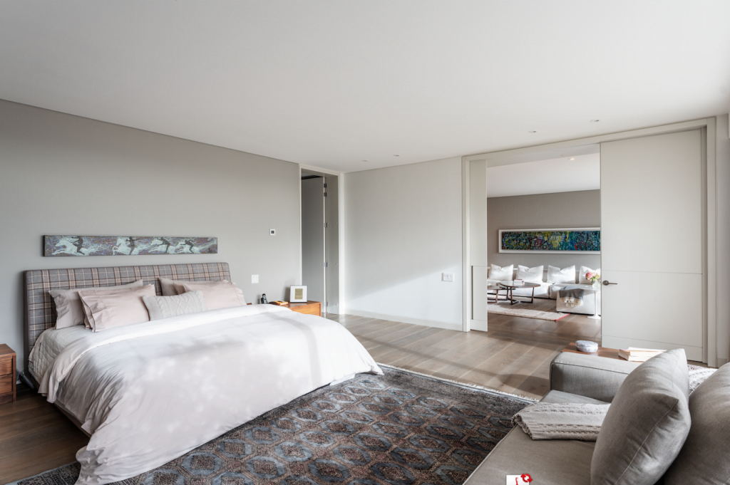 En este sentido, uno de los mayores retos en cuanto al diseño radicó en lograr adaptar los espacios sin afectar la arquitectura de Luis Restrepo: Valoro su trabajo. Además, considero que el apartamento original está muy bien concebido. Sin embargo, tuvimos que modificarlo para que se acoplara a las condiciones actuales”. Ejemplo de lo anterior son el baño y vestier de la habitación principal, que unieron para crear un gran espacio con una isla central en la que se encuentran el lavamanos y un mueble de generoso tamaño. En el primer piso, destinado a las habitaciones, retiraron las divisiones que actualmente son innecesarias.