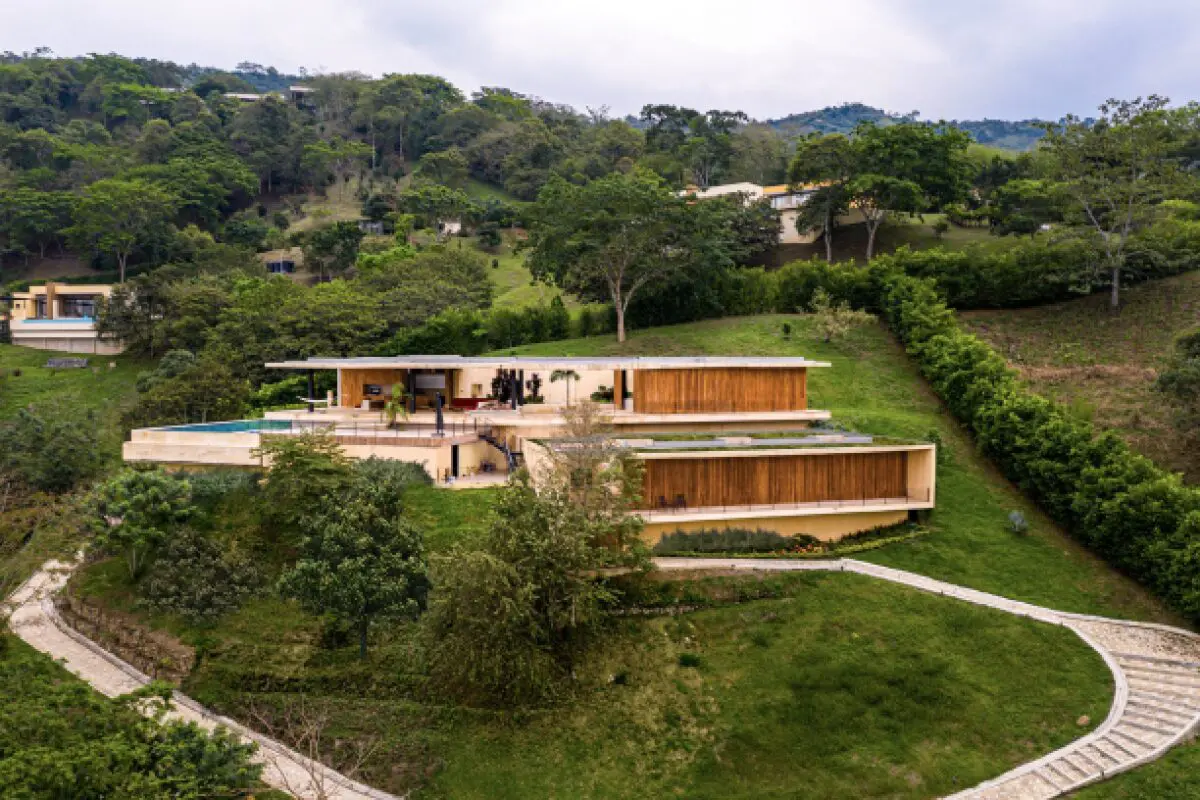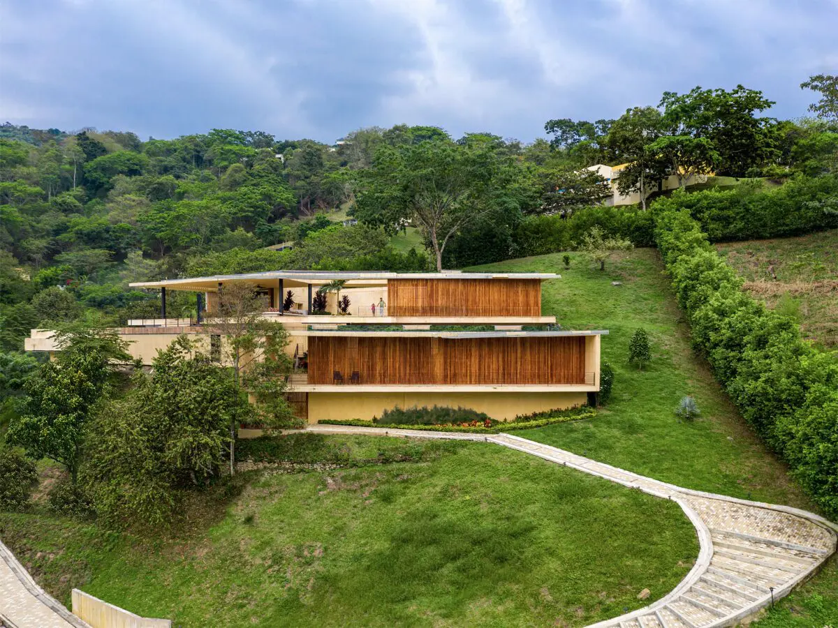 Su arquitectura defiende la tradición moderna de los países tropicales con una volumetría controlada, que se perfora y ofrece sus espacios al viento mientras los protege del sol con aleros de concreto. Si los dibujos infantiles ponen la casa en medio del paisaje, esta obra de  Arquitectura en Estudio nace de él, del monte y de los árboles. No es ya una figura sobre un fondo, sino un cuerpo que no distingue entre geografía y espacio habitable, concebido para circular de manera intermitente entre el exterior y el interior.