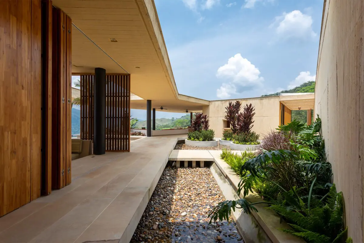 Una secuencia de patios, conectados mediante una escalera, vincula las estancias de esta residencia con el cielo y el clima cálido de Villeta.