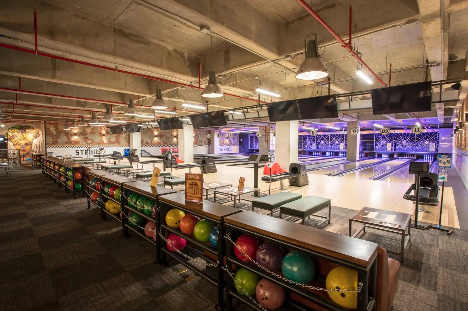 “La Industria Bolera. Partimos de ese nombre para crear un espacio que fuera una remembranza a las fábricas de años atrás”, comenta la arquitecta Ana de los Ríos, quien junto con la diseñadora industrial Ana Cristina Gaviria –su socia en la firma Tres A Studio– realizó el diseño arquitectónico de esta bolera, reconocida en 2020 como el Mejor Nuevo Centro Boutique Internacional, en los Bowlers Journal International Architecture & Design Awards. Sus diseñadoras querían que tanto los materiales como las redes técnicas y el mecanismo de la zona de juego estuvieran expuestos a los visitantes.