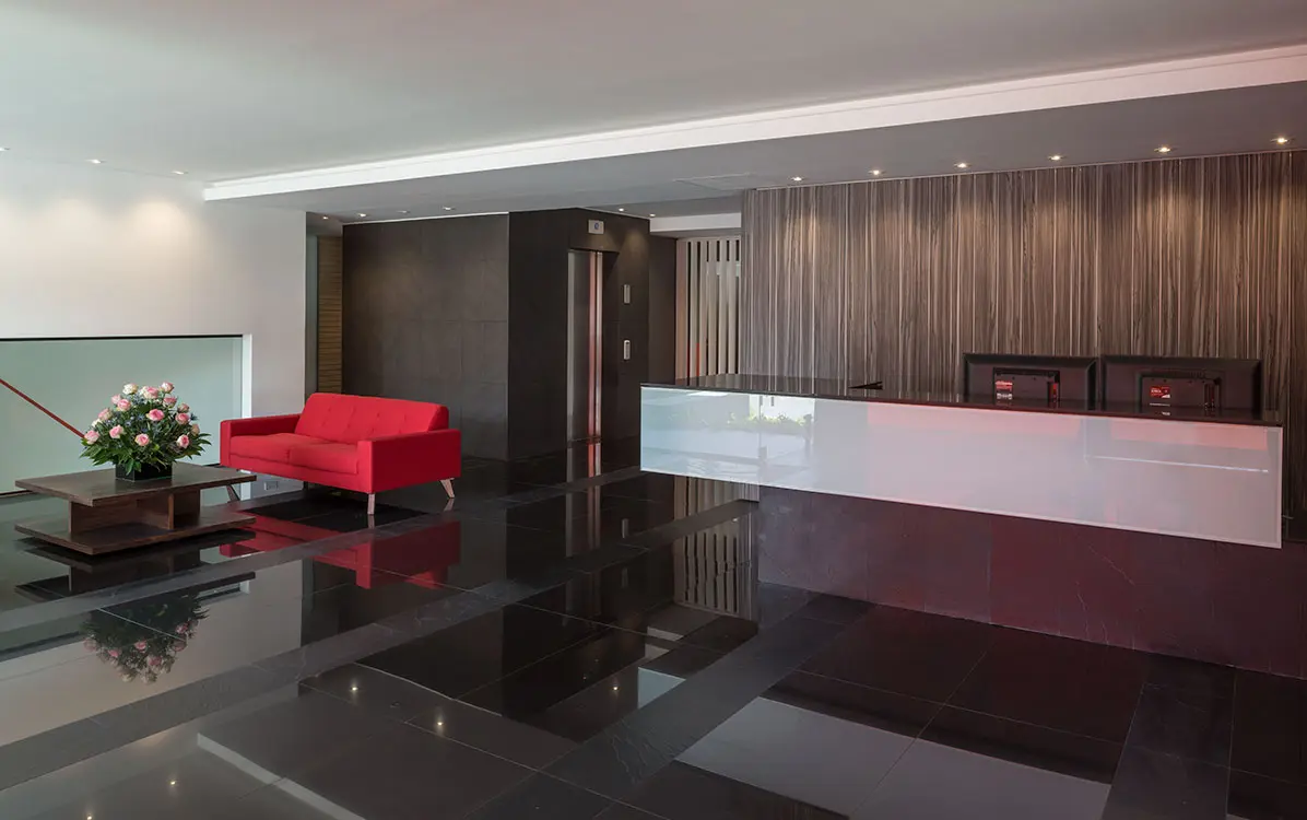 El lobby del edificio se convierte en una experiencia diferente, inspirado en tendencias innovadoras utilizadas por hoteles internacionales, buscando romper la monotonía de lo cotidiano. Ofrece también espacios propios a las personas que gustan del deporte (squash, gimnasio y cancha de fútbol cinco en terraza completamente enmallada), y promueve el compartir en familia (BBQ y zona de juegos para niños).
