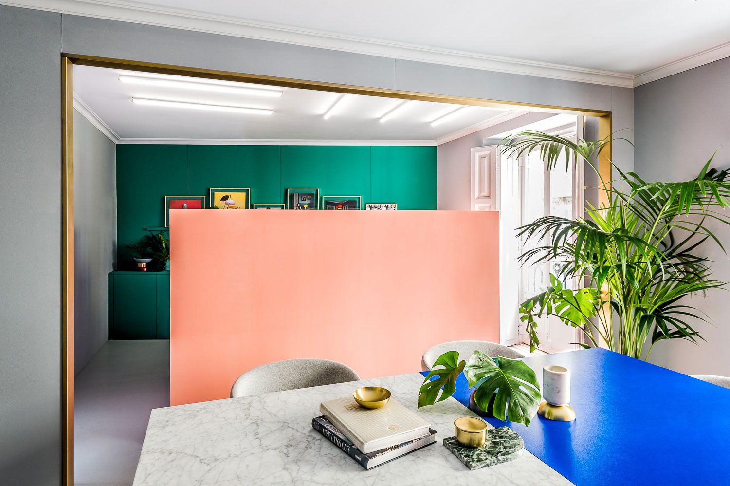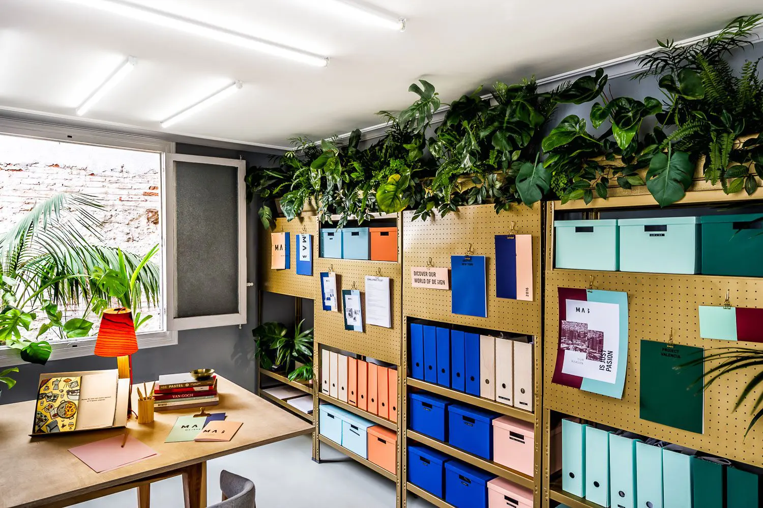 Con respecto a la elección del color de la marca, el diseño permite jugar continuamente con los diferentes colores y elegir el color más «moderno» para cada momento y proyecto. Este hecho muestra claramente la naturaleza versátil de Masquespacio como un estudio de diseño multidisciplinario que trabaja tanto en proyectos comerciales como exclusivos. El mismo concepto se utiliza para el diseño interior que juega con los diferentes colores y particiones de la identidad de la marca.