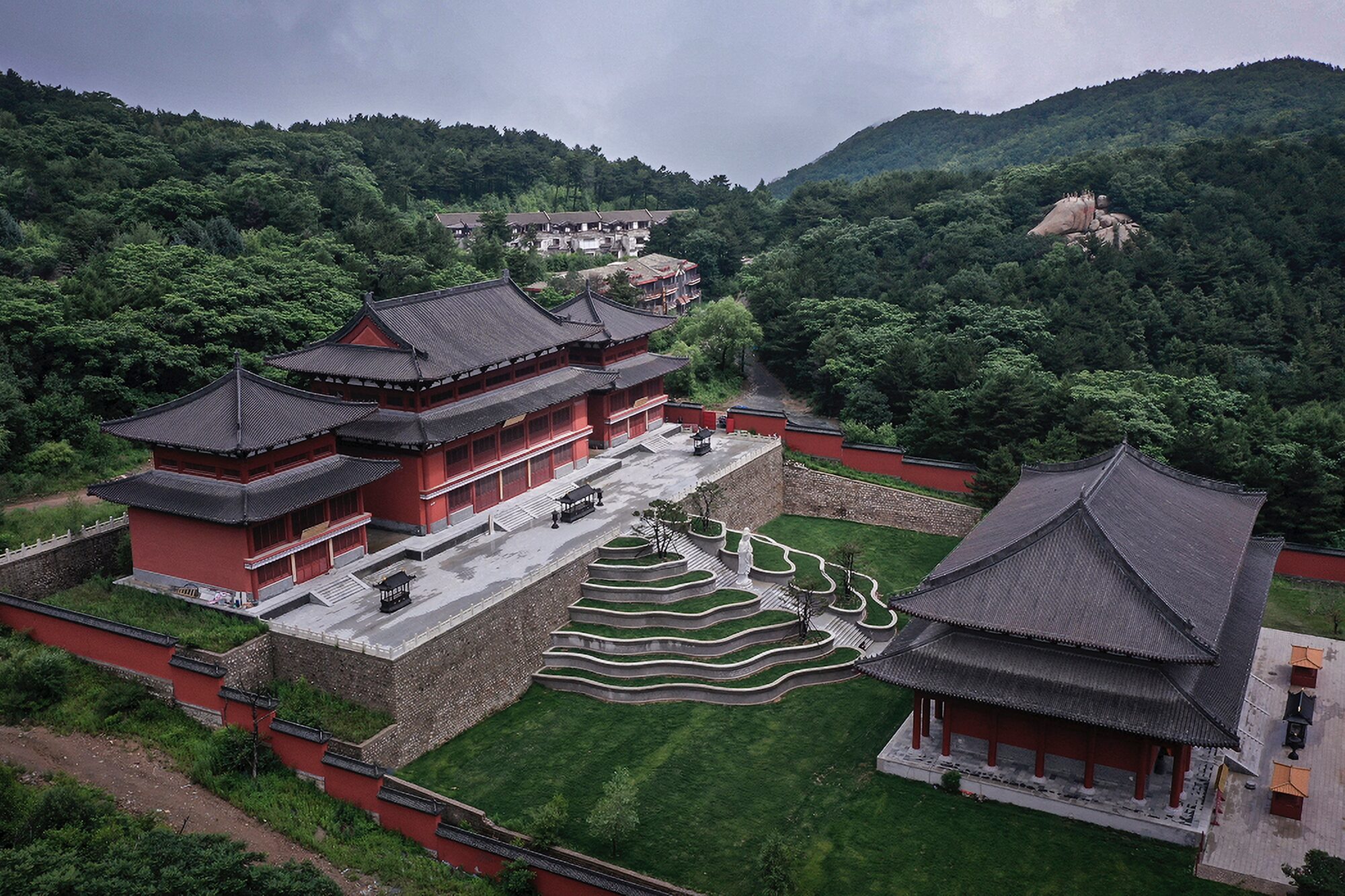 Las edificaciones ubicadas en la parte más alta contienen un museo dedicado a exhibir estatuas de Buda. En este proyecto museístico, diseñado por el arquitecto chino Han Wenqiang, de la firma Archstudio, se aprovecha el carácter ceremonial del centro religioso para proponer una arquitectura en la que la contemplación y el movimiento a través de ella tienen una connotación de ritual.