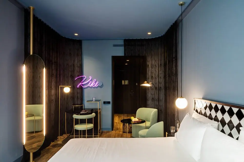 Otro punto de partida es el edificio palaciego del siglo XIX en el que se encuentra el hotel, donde sus nobles habitaciones aún conservan elementos de gran interés patrimonial, techos lujosamente decorados, colores intensos en las paredes y detalles decorativos barrocos. Las características más tradicionales y populares de Madrid, así como algunos de los elementos visuales más conocidos, como los relacionados con la corrida de toros, la «mantilla» o la estética gitana, también desempeñaron un papel importante en el diseño.
