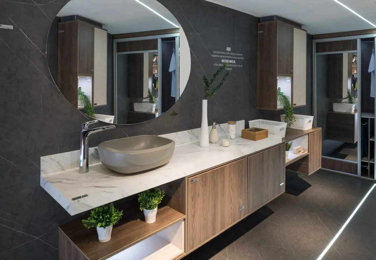 Por otro lado, círculos, rombos, triángulos, octágonos y hexágonos son las figuras geométricas que combinan y aparecen en las nuevas colecciones de acabados. También introdujeron productos con relieves voluminosos y texturas fuertes, que permiten a las personas definir una relación táctil con el entorno. En los baños es posible ver looks urbanos, donde el protagonista es el gris y la decoración de madera; otros, más rústicos, de piedra y mosaicos, y estilos con enchapes de colores vivos.