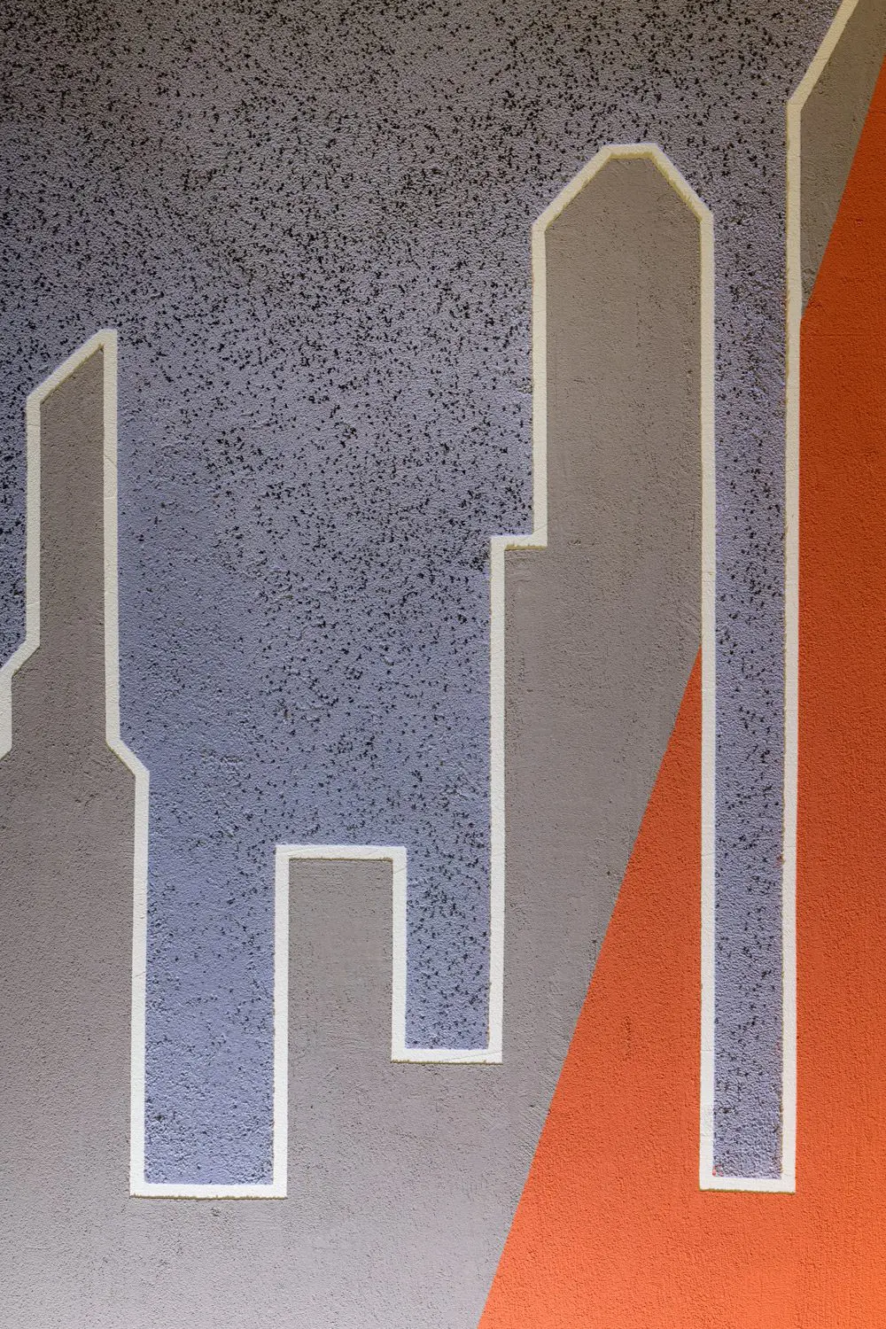 En cuanto a materiales, para su elaboración contaron con tableros laminados de MDP (Medium Density Particleboard) estándar, con diseños en colores blanco nevado, vienés y grizzo, de Duratex. Mezclaron lo anterior con tapicería en tonos como el naranja –que le da vida al ambiente– y el gris. Con esto los arquitectos conciben un espacio de corte académico y contemporáneo.
