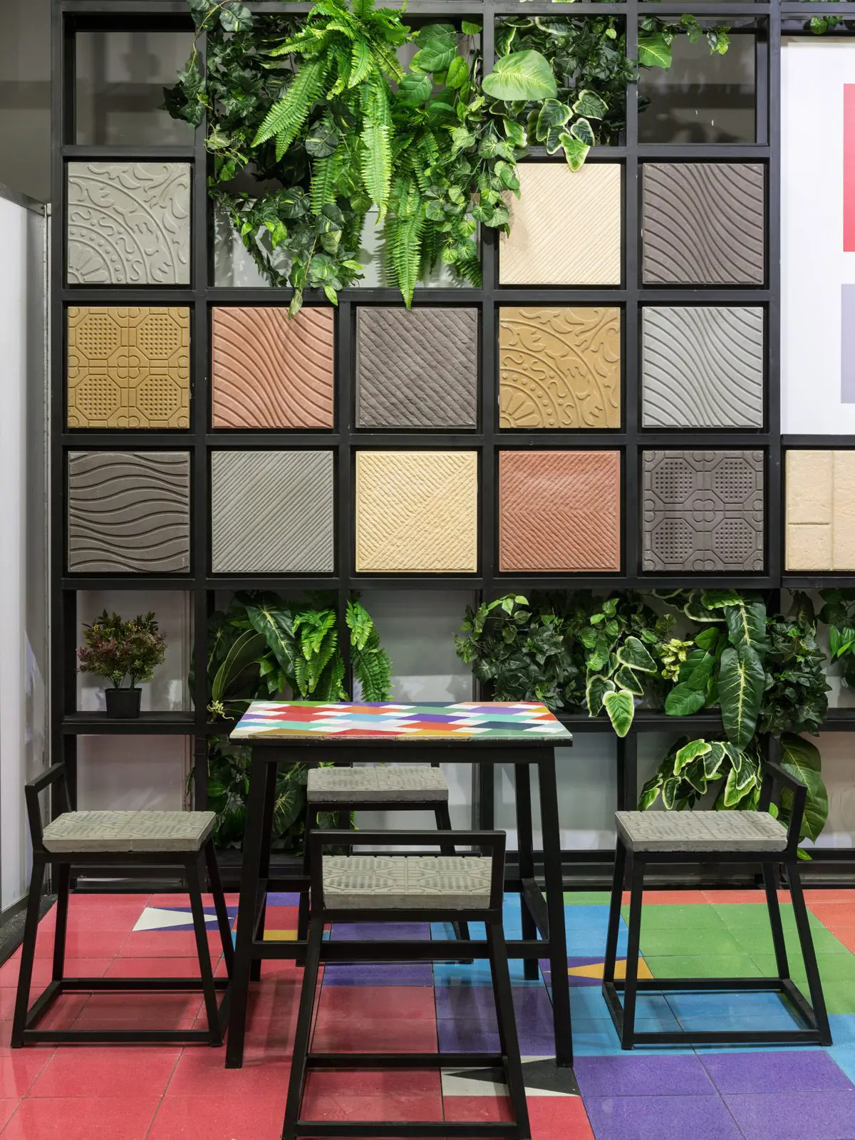 En Expoconstrucción presentó tres opciones: de grano pulido y colores vivos, de 40 centímetros por 40; líneas especiales con texturas para espacios públicos, y el nuevo lanzamiento Pietratto de Roca, de 20 centímetros por 20, de colores intensos para piso o pared y estructurado en relieves que imitan los diseños de las baldosas hidráulicas.