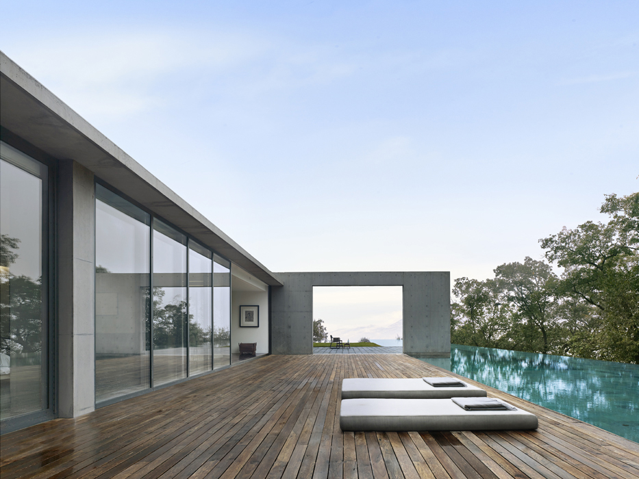 Los principios estéticos y el diseño de Tadao Ando se arraigan en el suelo mexicano a través de una casa serena y dinámica a la vez, donde la sobriedad del concreto a la vista y la sencillez de las formas se combinan en una geometría que crea variadas posibilidades de asoleación y vista, mientras que las proporciones de los ambientes ajustan su escala con la imponencia del paisaje.