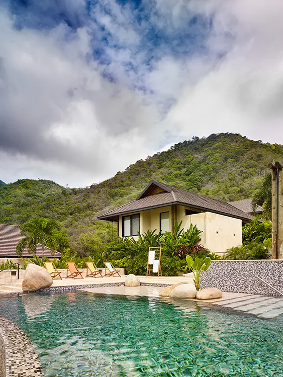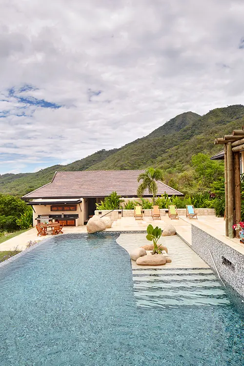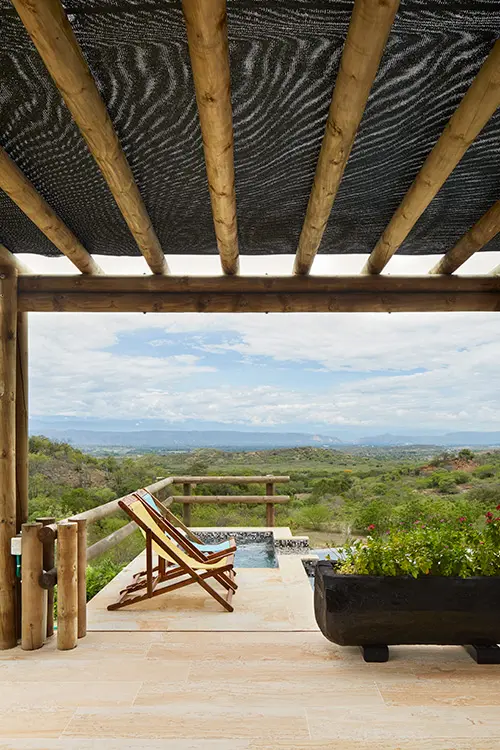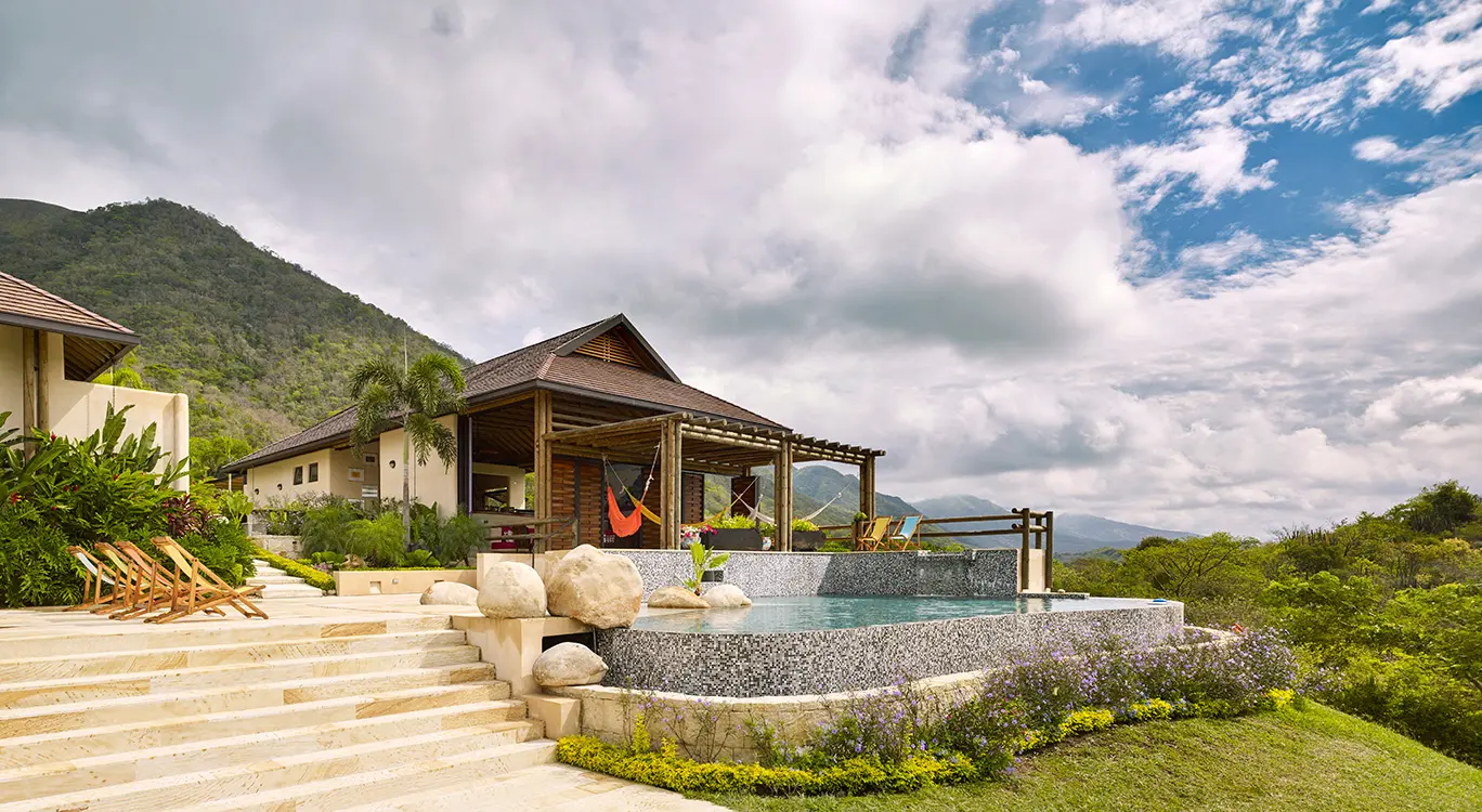 Ubicada entre los municipios de Tocaima y Girardot, esta casa es un oasis en las montañas. Aprovecha todas las virtudes de su entorno (está sobre la ladera de una montaña en el corazón de la cordillera Oriental), la vista privilegiada y el clima cálido que caracteriza la región durante todo el año para generar un espacio idílico de descanso y relajación.