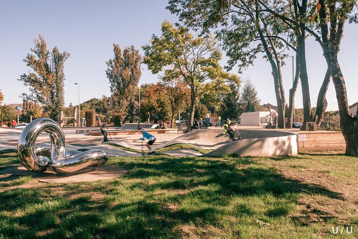 El impulso para la propuesta del parque de actividades de ocio en Řeporyje, Praga (República Checa), vino directamente de los residentes del distrito de la ciudad y su necesidad de un área de actividades deportivas y de ocio multifuncional. El objetivo de los diseñadores, Estudio U/U, fue crear un espacio público seguro y atractivo, que tuviera variabilidad de uso para diversas edades y grupos sociales.