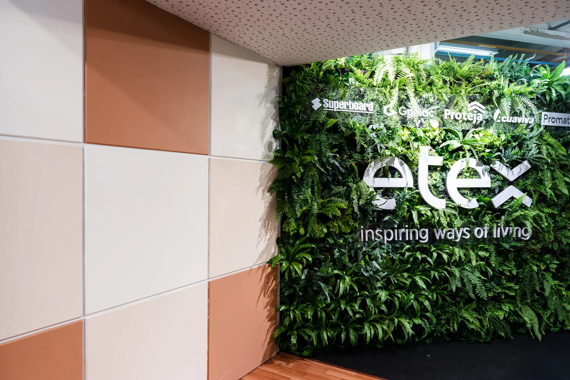 La propuesta de Etex fue creativa y diferencial. Su instalación estuvo dividida en cuatro secciones, correspondientes a los cuatro elementos de la naturaleza: tierra, fuego, aire y agua. Esto porque sus soluciones arquitectónicas se adaptan a cualquier necesidad y se relacionan con los elementos de distintas formas.