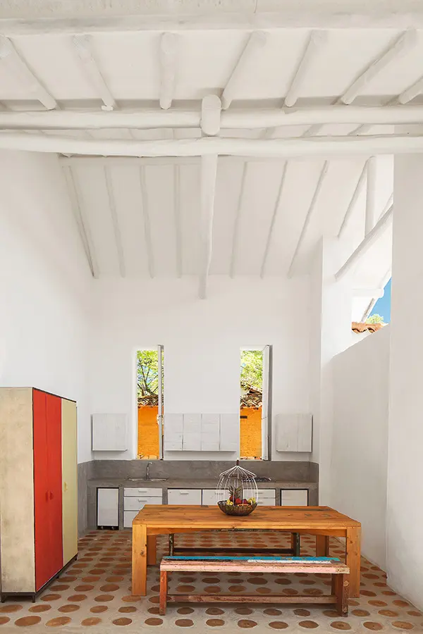 LA CASA NATURAL, ARQUITECTURA EN BARICHARA: Esta vivienda, ubicada en un rincón de Barichara y diseñada por la arquitecta colombiana radicada en Italia Luz María Jaramillo, en colaboración con Camilo Holguín y el ingeniero Mario Bernal, distribuye sus espacios en tres cuerpos separados. Los muros blancos de la casa se mezclan con la piedra barichara sobre pavimentos exteriores de grandes rocas entre las que crece una grama inesperada. Ya adentro, los pisos de adobe conviven junto a otros vaciados de concreto con lajas circulares de troncos embebidas.