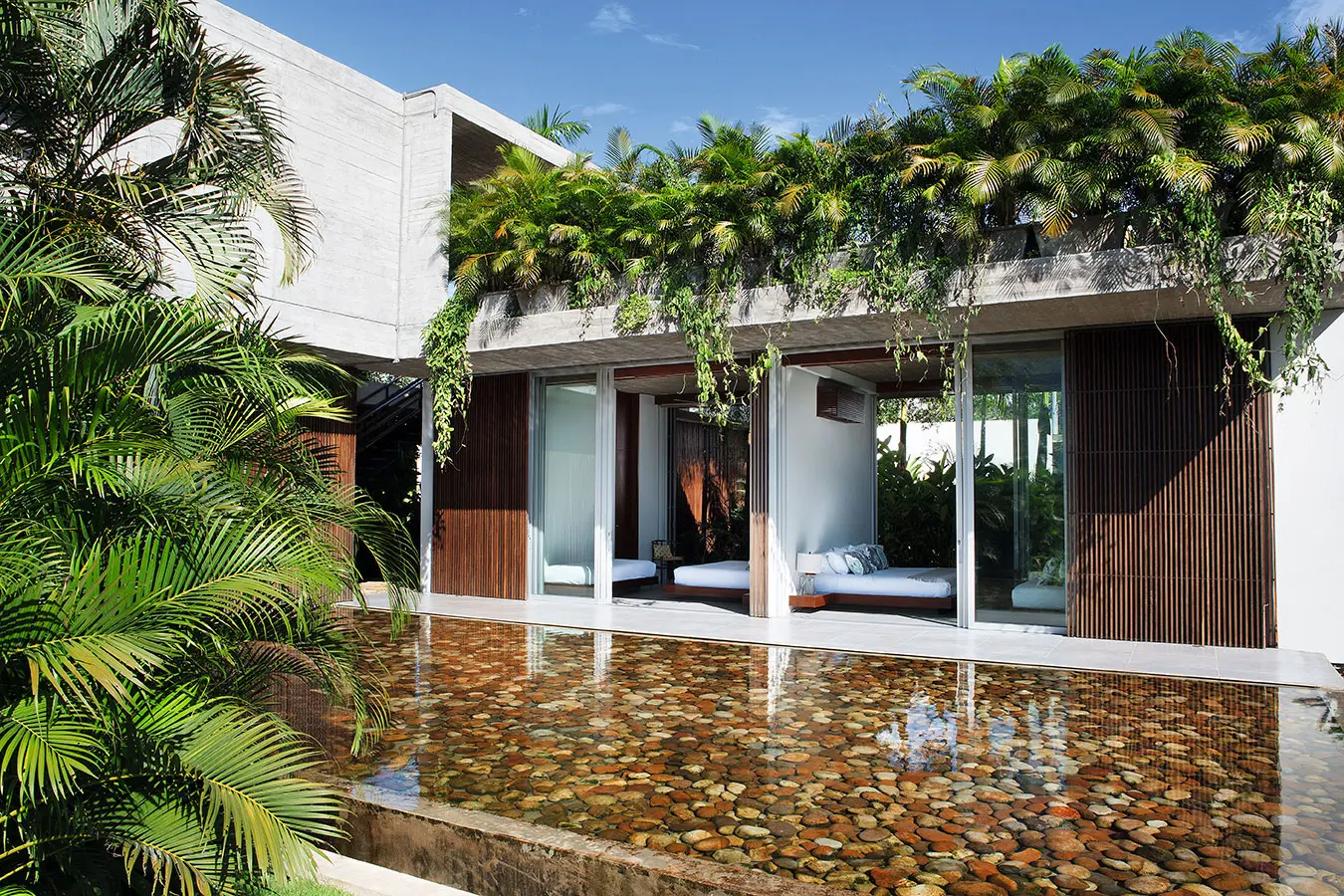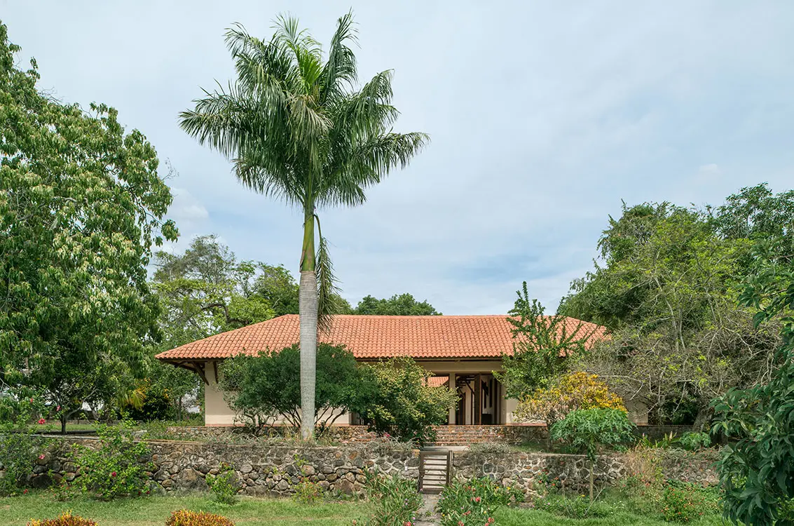 RACIONALISMO TROPICAL: ARQUITECTURA DE CONCRETO Y MADERA: Son dos casas gemelas, diseñadas a partir de una materialidad honesta, que exalta las cualidades y texturas del concreto fundido por medio de una formaleta de madera machihembrada. Complementando este material encontramos puertas y celosías de madera, las cuales, combinadas con el verde de los jardines cercanos y el paisaje lejano y con la presencia del agua, generan una atmósfera cálida de evidente carácter tropical. Un diseño racionalista de Alberto Burckhardt y Carolina Echeverri en el trópico colombiano. 5 tipologías de casas colombianas que reflejan la arquitectura tradicional del país LA NATURALEZA COMO REGENTE: Esta hacienda nace como respuesta al entorno compuesto por árboles centenarios y antiguos corrales de piedra que contienen el ganad cebú brahman. Aquí el interior y el exterior están conectados por una arquitectura que invita al descanso. “Hay que desmontarla”. Esto fue lo primero que pensó David Restrepo cuando visitó la casa en el Tolima que debía intervenir. “No tenía los valores propios de una hacienda de estas proporciones y calidades”, explica el arquitecto antioqueño, quien consideró que la casa original no se vinculaba con el paisaje, con los linderos de piedra que datan aproximadamente del siglo XIX, ni con la actividad agrícola y ganadera del lugar. Los argumentos fueron suficientes para convencer a sus clientes, quienes le dieron carta blanca para proponer una estructura que se adaptara a su entorno y cumpliera con los requerimientos del programa: básicamente una casa de recreo para una familia numerosa. La comparten cinco hermanos con su respectiva descendencia.