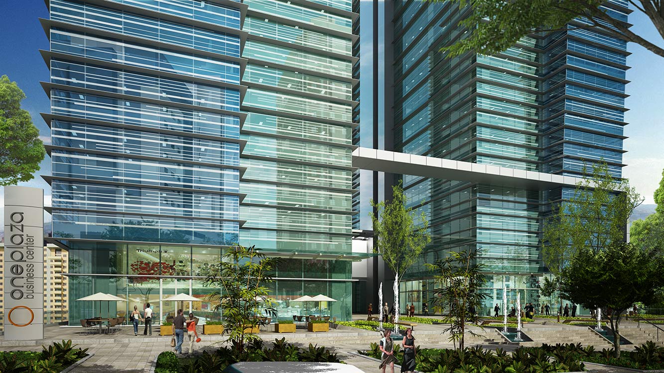 Cumpliendo los requerimientos más exigentes en cuanto a imagen, tecnología, equipamiento y eficiencia, Bienes & Bienes presenta One Plaza, un conjunto arquitectónico netamente corporativo integrado por dos torres de 15 y 21 pisos respectivamente, que totaliza 56.000 metros cuadrados de construcción y 22.500 metros cuadrados de área vendible, ubicado en el sector de Milla de Oro, considerado uno de los más cotizados de la ciudad. Una de estas torres fue adquirida por el Fondo de Inversión Terranum y se ofrece en arrendamiento a través de Coninsa Ramón H.