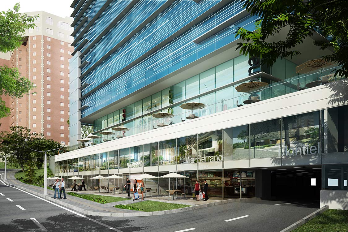 Ocho locales comerciales en la plazoleta central y tres adicionales de 43 metros cuadrados, en el sótano de una de las torres, se destinarán a actividades perfectamente compatibles y complementarias del uso corporativo, como restaurantes, bares y servicios especializados.