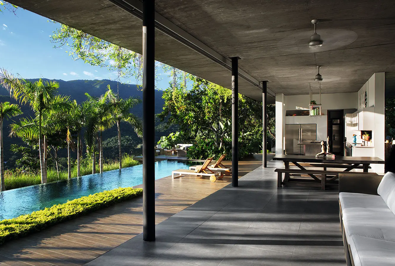 Los espacios son predominantemente abiertos, potenciando la ventilación cruzada y refrescando de manera natural aun en las horas más cálidas del día. Arquitectura y construcción: Alberto Burckhardt / Carolina Echeverri. Diseño estructural: Seteyco. Decoración: Andrea Álvarez.