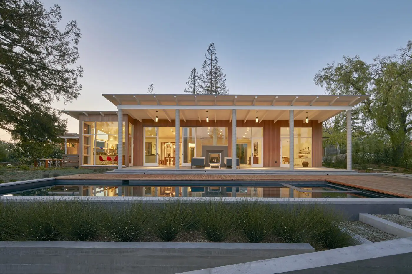 Desde una perspectiva de diseño, la casa, si bien es claramente moderna en su estilo, extrae formas y materiales de 80 años de arquitectura contemporánea del norte de California.