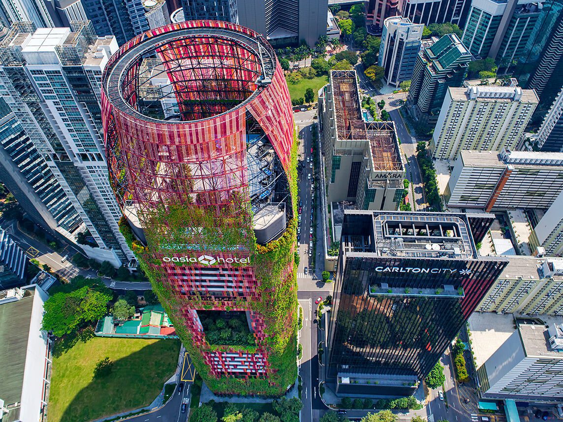 Si bien la búsqueda de la sostenibilidad a menudo va acompañada de una seriedad sin sentido del humor, WOHA muestra que prefiere mantenerse al margen. Este hotel de Oasia, que forma parte de una cadena homónima, combina sostenibilidad con deleite, dos términos que están presentes de manera prominente en la filosofía de diseño de la oficina.