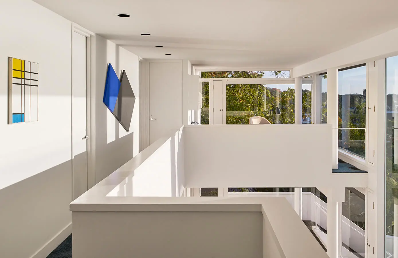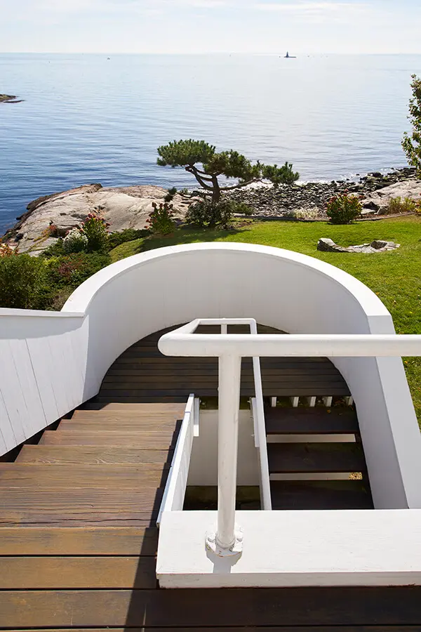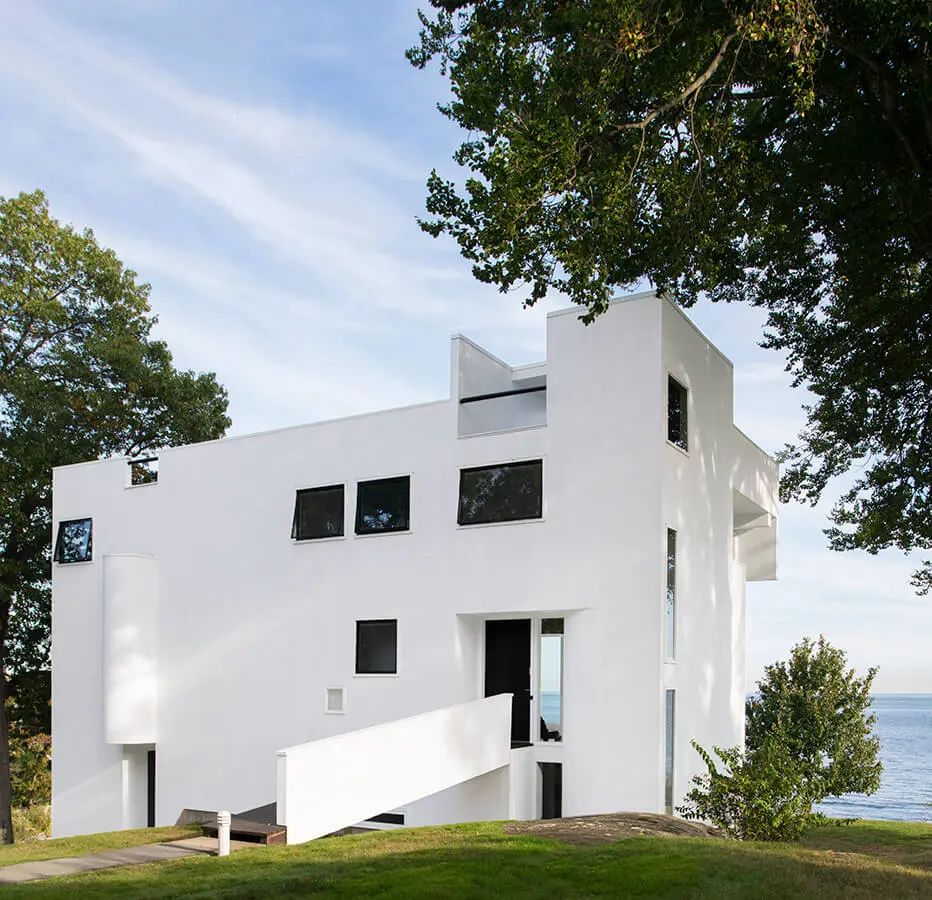 “En aquel momento trabajaba desde una habitación en un apartamento de dos alcobas. Acababa de salir de la oficina de Marcel Breuer (estuvo allí tres años) y apenas empezaba mi ejercicio independiente. Llegaron los Smith con un diseño preliminar, una casa de un piso estilo rancho americano, que se explayaba en el lote”. Al visitar el espacio y maravillarse con su entorno –tiene vista hacia Long Island Sound desde la costa de Connecticut– y luego de analizar la composición del terreno en que se construiría el proyecto, Meier decidió replantearlo completamente. “El suelo estaba hecho de pura roca. Una estructura extensa de un solo piso habría hecho de la cimentación algo terriblemente costoso”, afirma con contundencia. Su diseño se convirtió en una vivienda compacta de carácter vertical, cuya huella exige una cimentación más reducida.