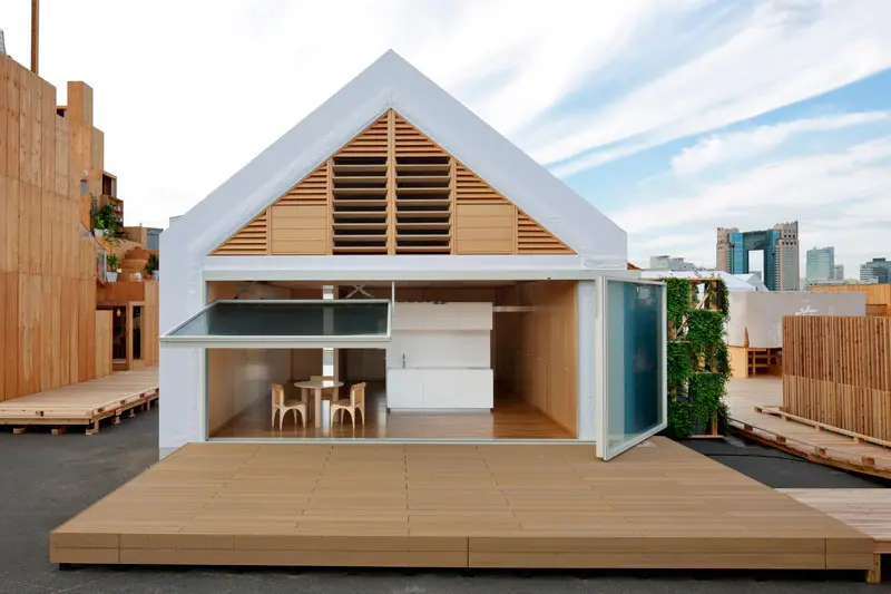 Una variación de la tipología anterior es la casa abierta propuesta por la firma Lixil con el arquitecto Shigeru Ban, ganador del premio Pritzker y famoso por sus proyectos de vivienda de alto diseño y bajo costo. En su proyecto la estructura es construida rápidamente y fijada con un sistema de cremalleras. El espacio es abierto y flexible, permitiendo un gran número de combinaciones.