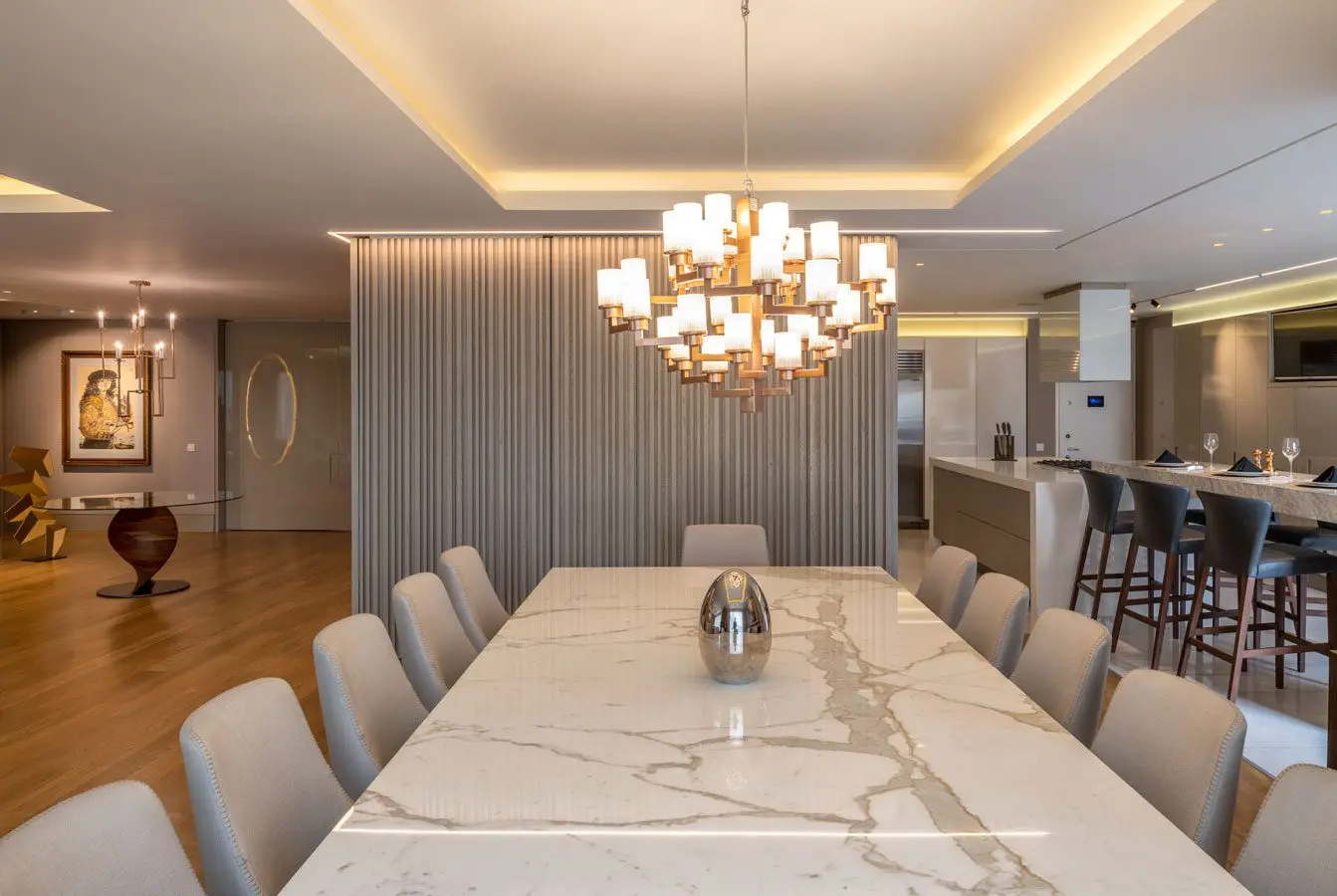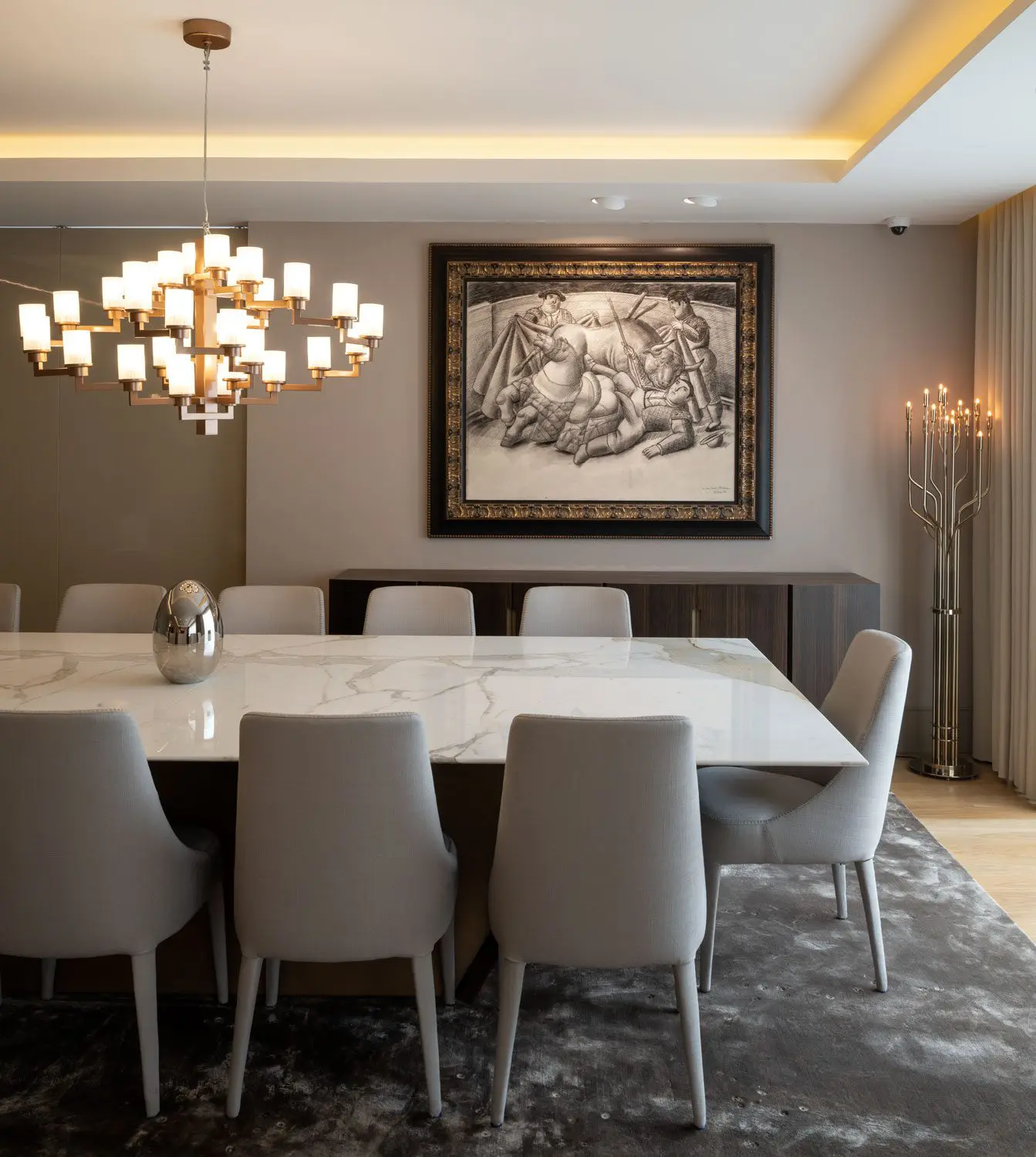 Otro punto relevante es el arte. En este aspecto contaron con Luis Guillermo Moreno, de la Galería LGM, como curador. Piezas de artistas de la talla de Enrique Grau, Fernando Botero y Hugo Zapata habitan los muros y rincones del apartamento, junto con una del español Salvador Dalí, que acompaña a los clientes desde hace años. Un paisaje interior de obras de gran valor decora cada ambiente, siempre hay algo que mirar y apreciar al recorrer las múltiples habitaciones de este hogar.