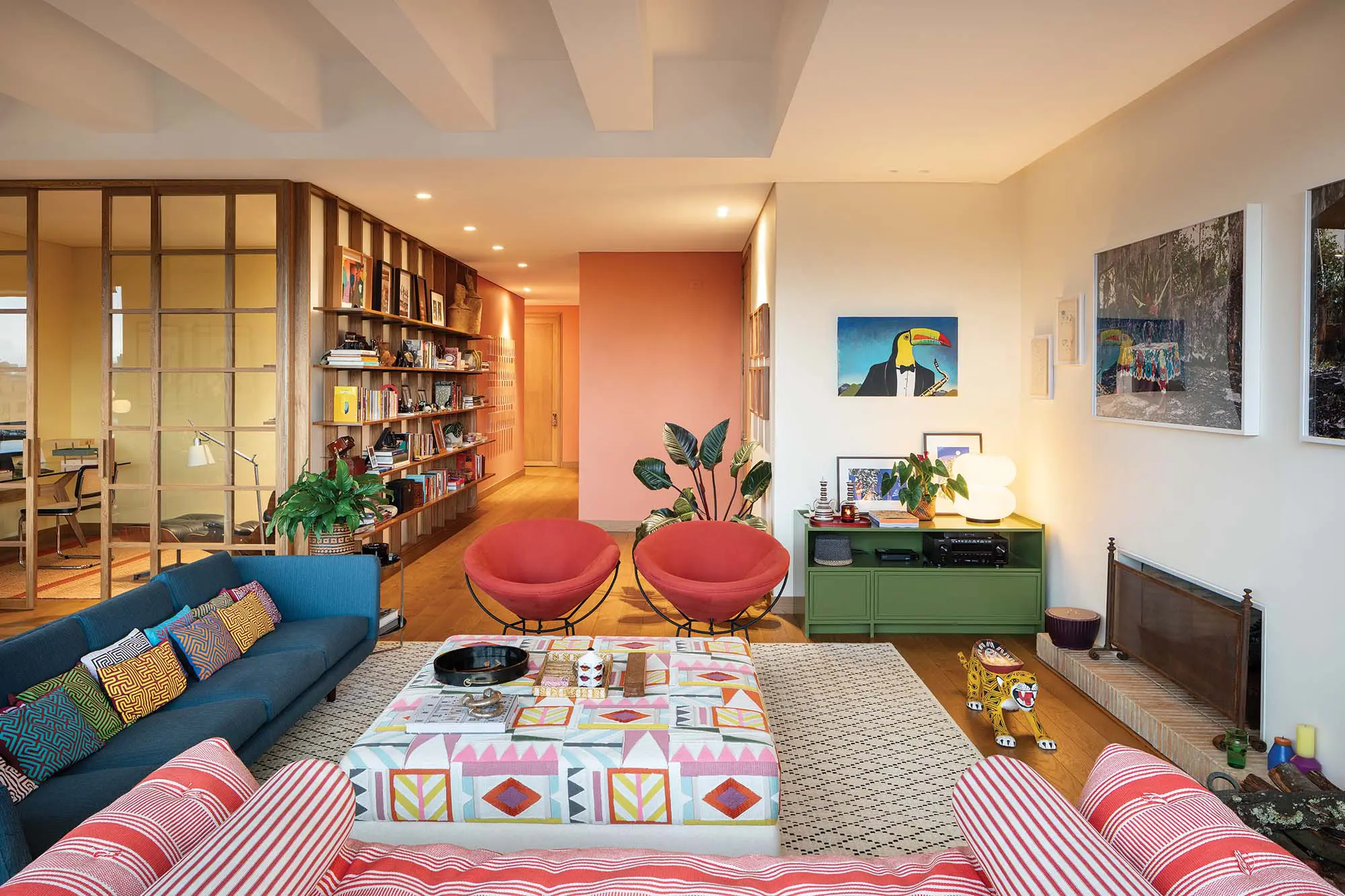El otro cambio clave en esta remodelación fue el estudio, logrado en una esquina descubierta tras la apertura del espacio de la cocina original, que se abre a manera de vitrina sobre la sala y el comedor y que, además, hace las veces de recibidor al entrar al apartamento, con una biblioteca concebida como una vela de barco.