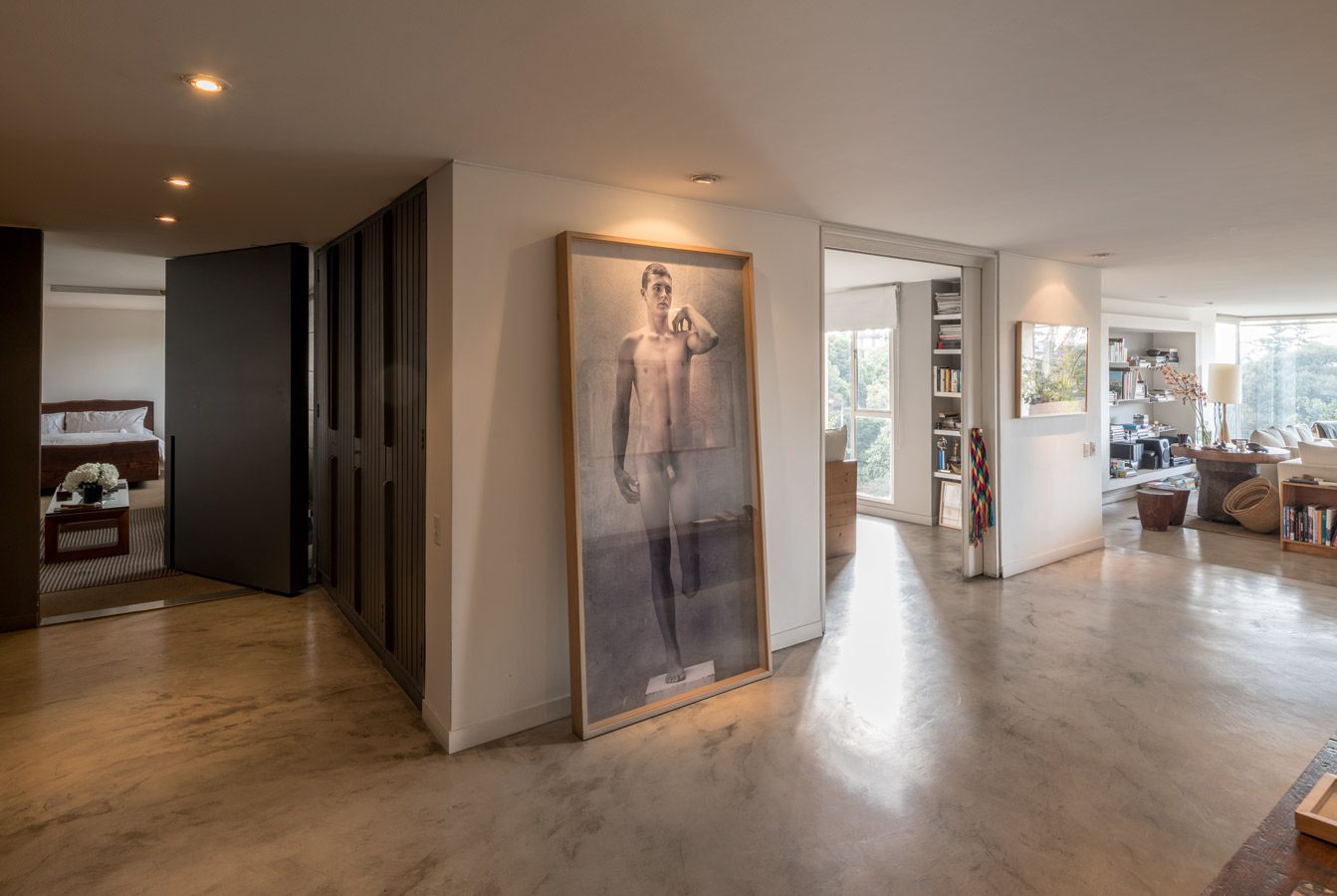 En el recibidor aparece orgulloso el David, del artista bogotano Miguel Ángel Rojas, que exhibe poderosamente las huellas de la guerra. La contundencia de la obra y la íntima conexión que generó con el propietario, hacen que su presencia se repita en la habitación principal. Esto a partir de una reinterpretación de esta fotografía por parte del artista Esteban Peña.