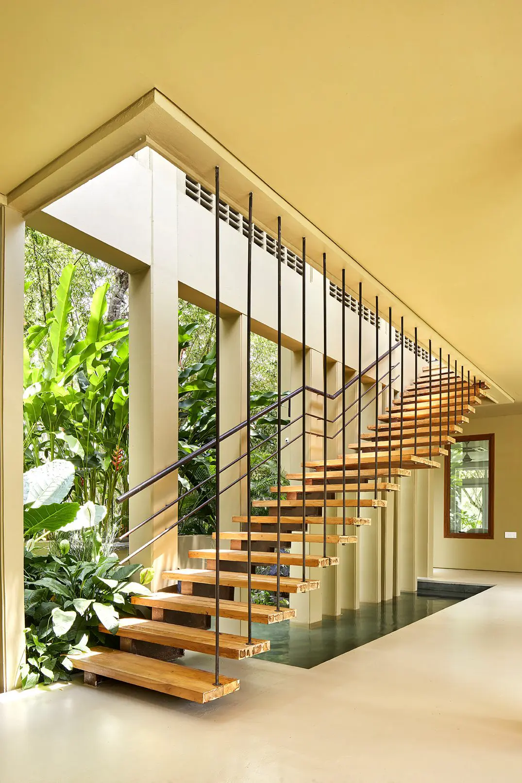 Así, las líneas rígidas de la arquitectura se apaciguan y hacen oda al encanto de este paisaje tropical. Se diría, pues, que este proyecto se fusiona con el lugar de emplazamiento para vivir en perfecta simbiosis con él. ν