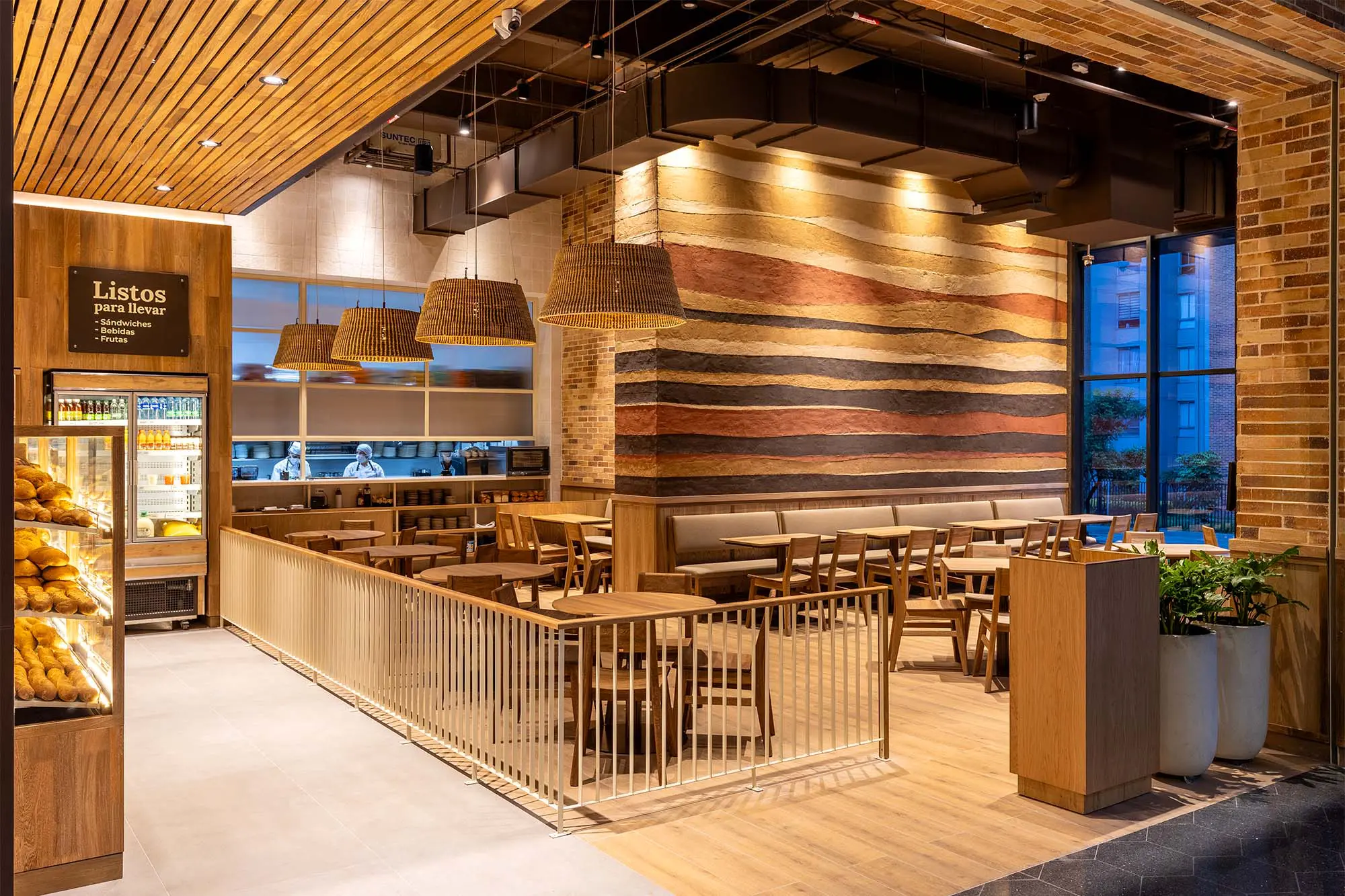 La renovación de imagen de la cadena colombiana Hornitos ha estado a cargo del arquitecto Juan Andrés Pérez, quien por intermedio de su firma JAP Arquitectura se encargó de hacer la conceptualización y el diseño de esta nueva cara, en la que materiales nobles como la madera son protagonistas indiscutibles.