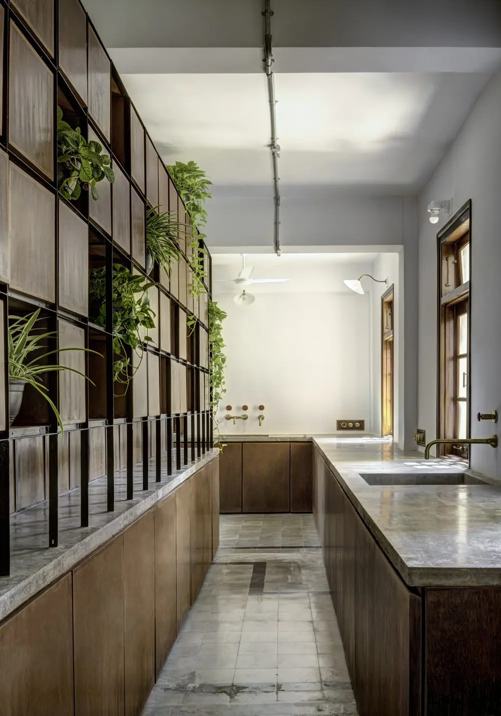 Como la mayoría de los apartamentos más antiguos, el # 7, Southlands también, era una configuración típica Art-Deco que involucraba múltiples habitaciones estructuradas para facilitar la vida doméstica convencional de un hogar indio. El breve postulado espacios dinámicos multifuncionales que sirvieron para diferentes propósitos de vez en cuando, y sin embargo implicó la preservación de sus atributos icónicos. Este enfoque requería una propuesta de restauración consciente que no solo renovaría el encanto perdido de un apartamento colonial 3BHK de 300 metros cuadrados, sino que también aborda los detalles de múltiples usuarios de un espacio de trabajo residencial neotérico, donde: