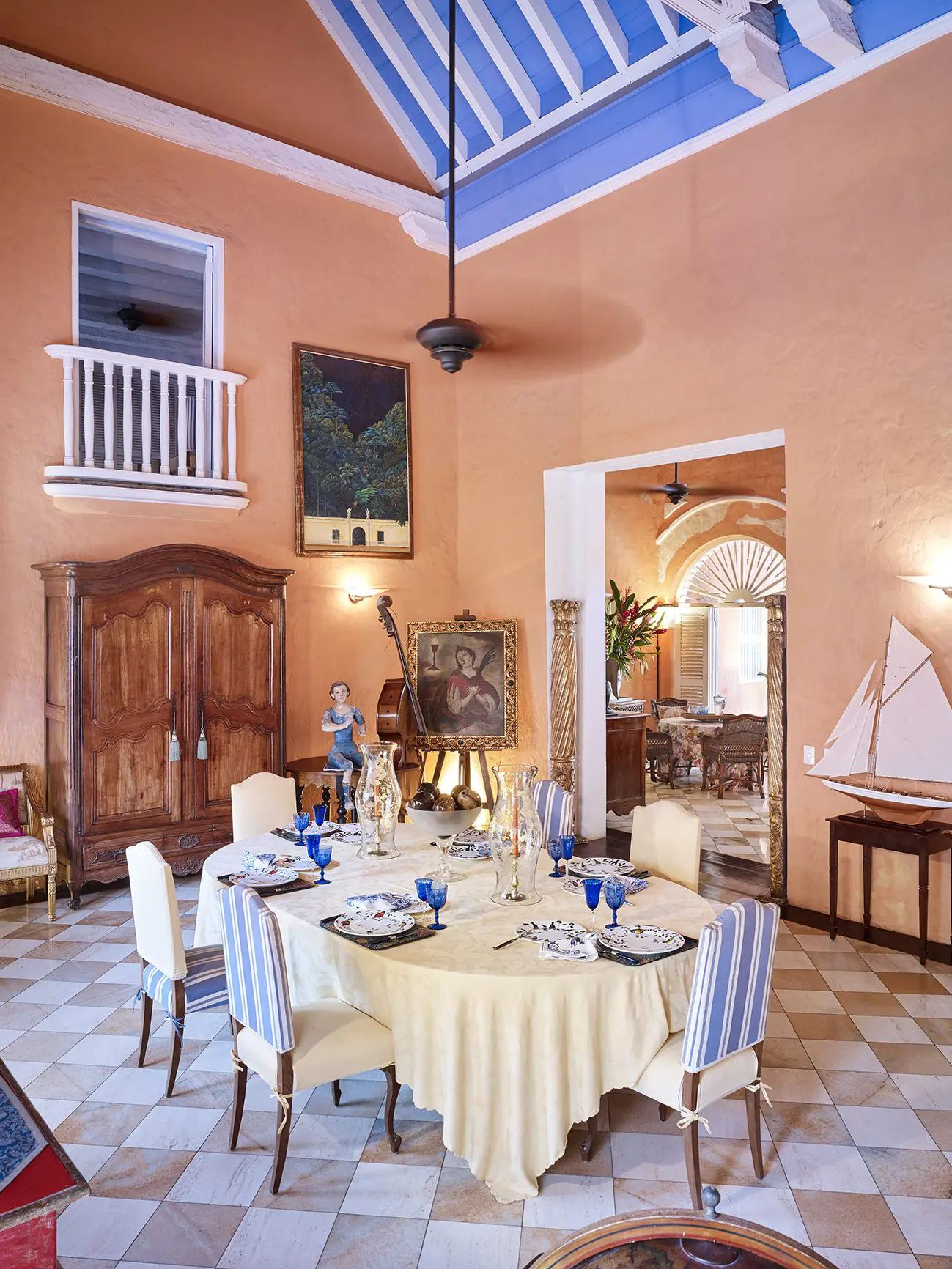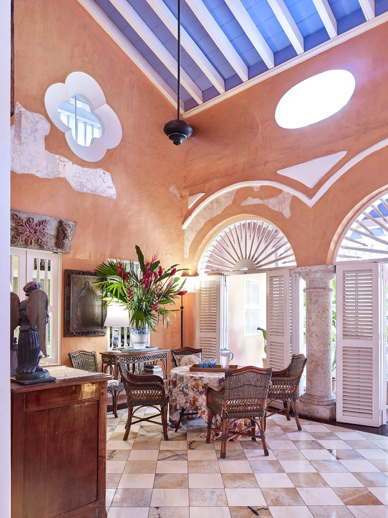 “El gusto por el arte italiano proviene de nuestros viajes a Venecia. De ahí se desprende esa influencia, la cual se conjuga con ingredientes locales”. En pocas palabras, reminiscencias coloniales, colorido del trópico y visos de arte europeo confluyen en este proyecto de restauración arquitectónica, que transforma un ambiente doméstico de varios siglos atrás en un espacio realmente idílico.