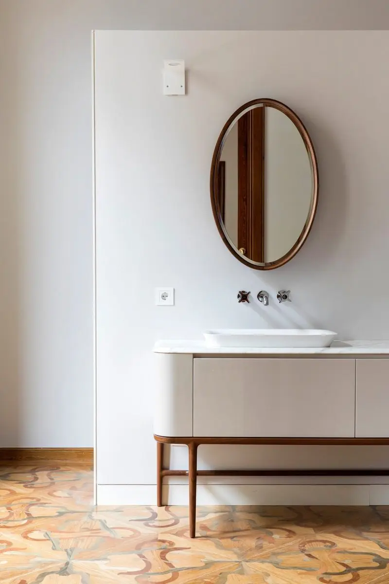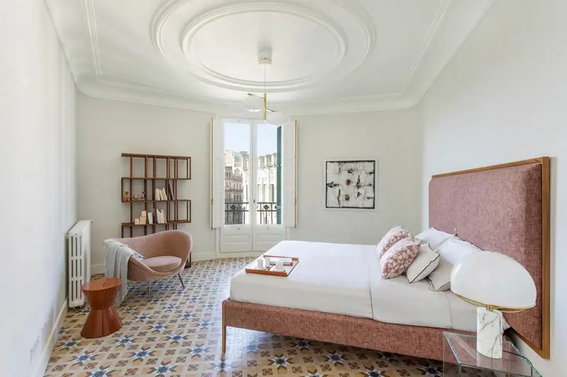 Los pisos ubicados en los pisos superiores, originalmente concebidos para alquiler, se transformaron en 16 apartamentos y 5 áticos. Estas 21 residencias combinan fuertes espacios modernistas originales con otros más contemporáneos. Los elementos antiguos se encontraron en los espacios ubicados en la corona del edificio que da a la fachada; Estos elementos originales fueron restaurados. En las áreas interiores de los pisos, donde los elementos originales no existían o no se podían preservar, la decisión fue incorporar nuevos materiales que permitieran el contraste entre los viejos y los nuevos: el color blanco y la madera de roble se agregaron como principales elementos para no competir, sino para resaltar y contrastar los elementos decorativos originales.