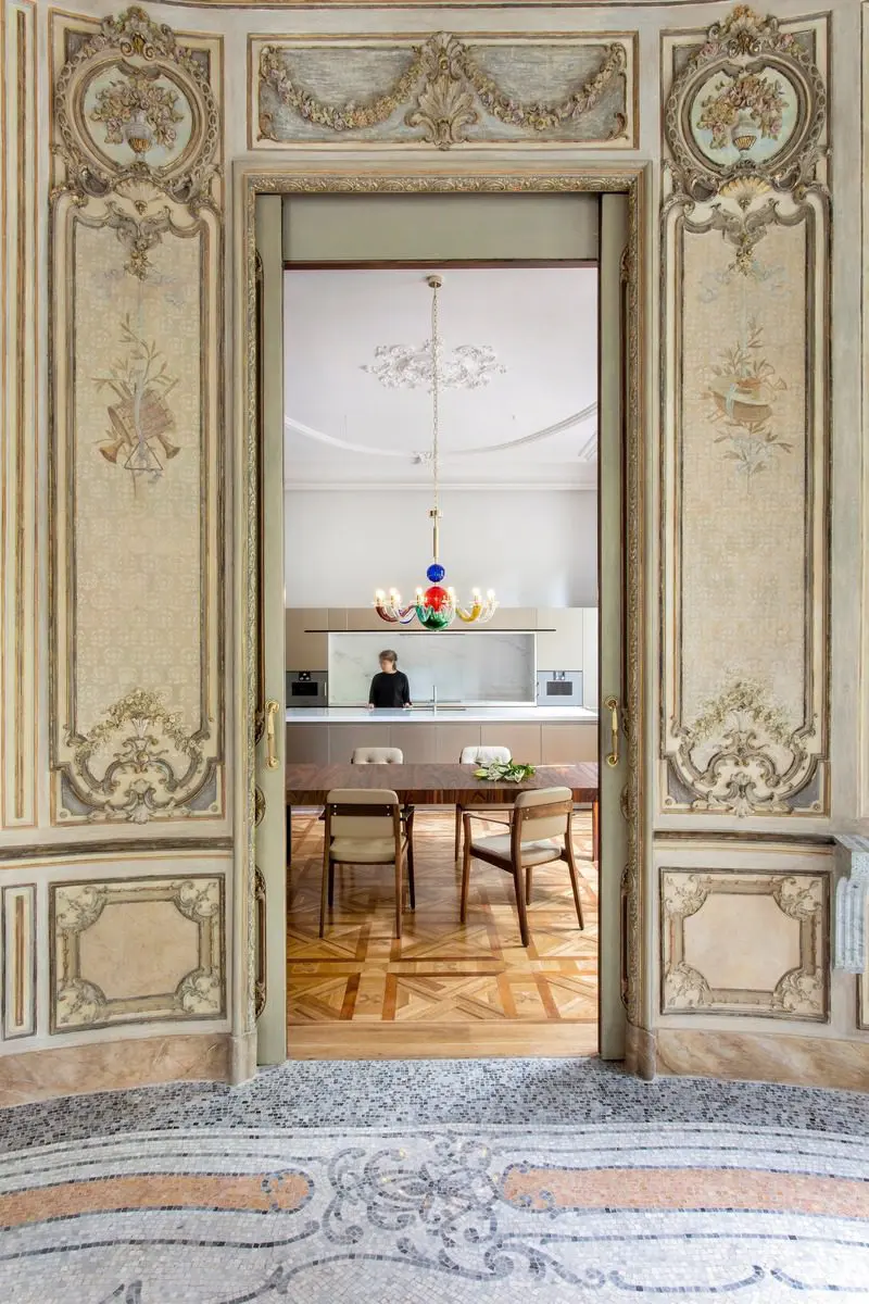 El proyecto de diseño de interiores tenía dos objetivos : recuperar y resaltar los elementos decorativos originales del edificio, y adaptar la vivienda a las necesidades regulatorias y funcionales contemporáneas en términos de distribución, tecnología, seguridad, accesibilidad, comodidad y comunidad.