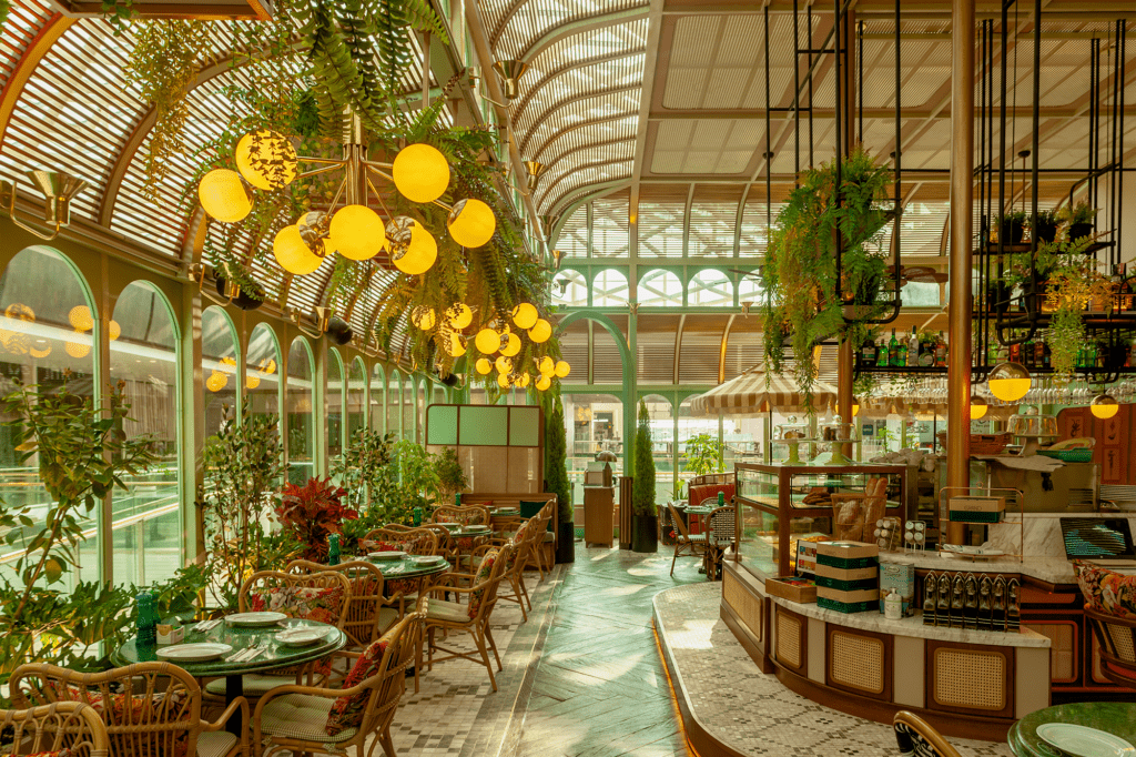Este café bistró celebra la vida social contemporánea por medio de un diseño historicista —obra de la firma de arquitectura RD Studio— que evoca, por un lado, las estructuras de hierro y vidrio que erigieron los arquitectos ingleses —principalmente— tras la Revolución Industrial, y por otro, la estética de los cafés parisinos que son insignia de la Ciudad de la Luz.