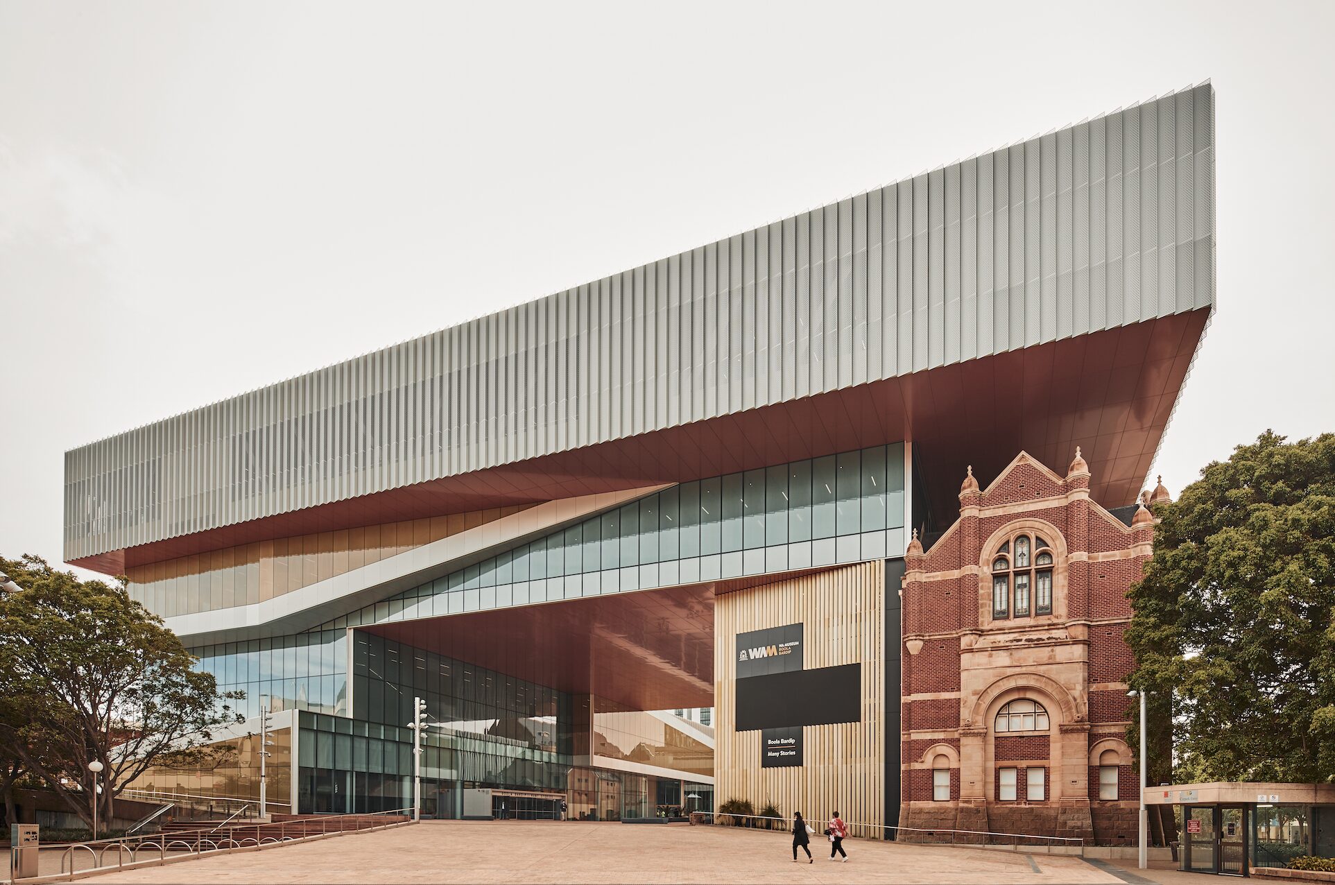 Restaurar implica un esfuerzo técnico para congelar la imagen del pasado. Pero en ocasiones, los requerimientos de las instituciones albergadas en estas edificaciones hacen necesario concebir piezas nuevas que las complementen y, cuando esto ocurre, lo antiguo y lo novedoso conviven en una especie de collage arquitectónico y espacial. Este es el caso de la adición al WA Museum Boola Bardip, diseñada por las firmas OMA y Hassell, construida recientemente en el Centro Cultural de la ciudad de Perth, en Australia. La nueva estructura cuenta con espacios para exhibiciones, además de locales comerciales y restaurantes.