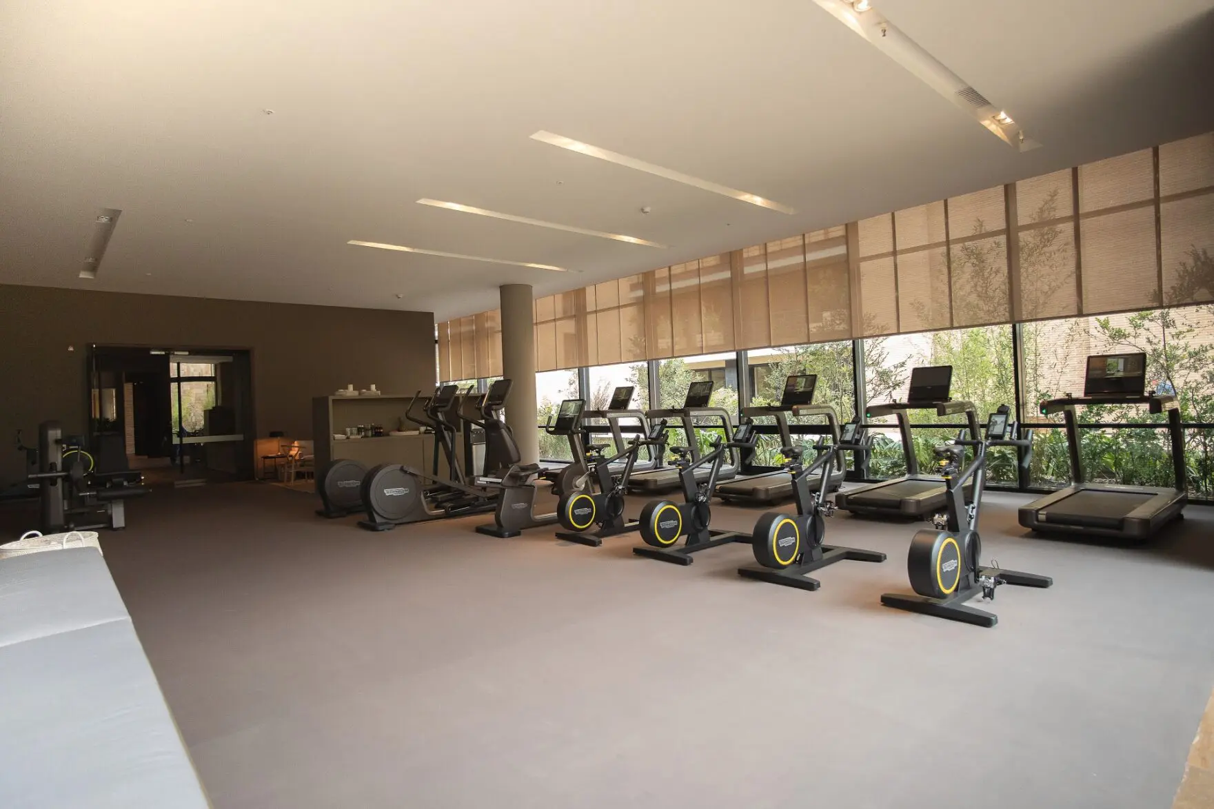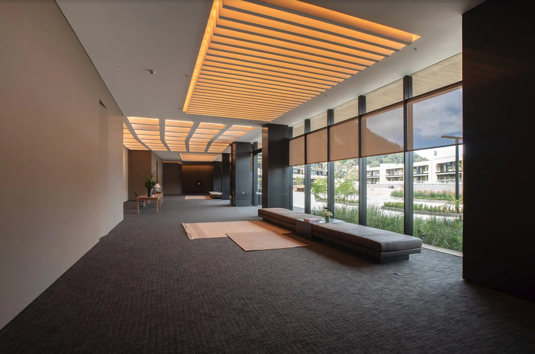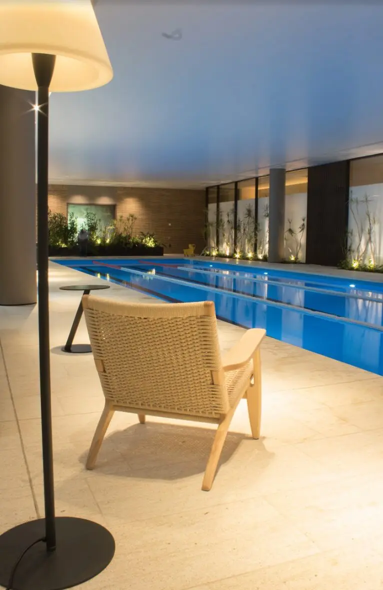 El Club-House, ubicado en el centro geográfico del proyecto, contiene un gimnasio, sala de yoga, piscina semiolímpica con tres carriles bañada por una cascada de luz natural que atraviesa su amplio ventanal de fachada, spa con zona de masajes y peluquería, vestidores con baños turcos y saunas con áreas de relajación y duchas. Todos estos servicios y espacios están en el primer nivel. Su funcionamiento se ha ajustado a la nueva realidad a partir de la implementación de protocolos de bioseguridad y limpieza, y de un sistema de reservas que minimiza la necesidad de interacción personal y garantiza un entorno cómodo y seguro en el momento de su uso. En el segundo nivel están el auditorio/ sala de cine con capacidad para 56 personas, salas de trabajo, reuniones y lectura, complementadas por una zona de coworking, café y baños. “En estos meses descubrimos que podemos trabajar tranquilamente desde casa”, comenta Héctor Uribe, y resalta uno de los aprendizajes positivos que nos está dejando la pandemia.