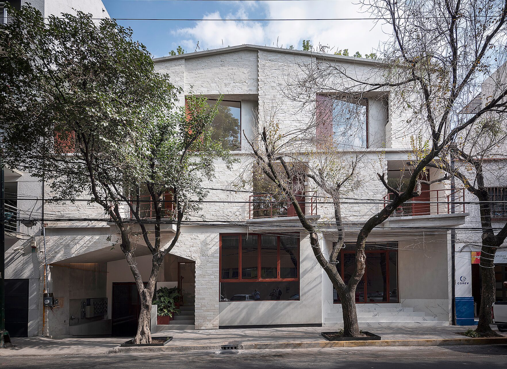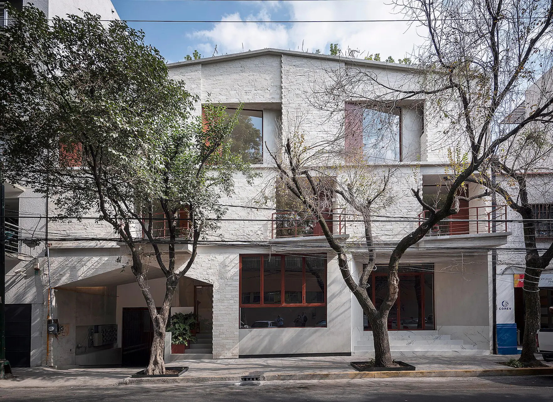El proyecto se desarrolla para vivir hacia el interior del complejo a través de un patio central y un patio trasero separado del límite posterior, permitiendo que todas las unidades residenciales tengan luz natural y ventilación cruzada. El complejo consta de 14 unidades, con 4 unidades estilo apartamento en la planta baja y 10 unidades estilo casa adosada de tres niveles ubicadas arriba.