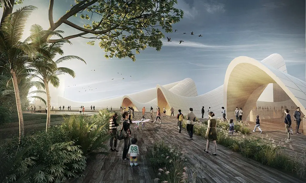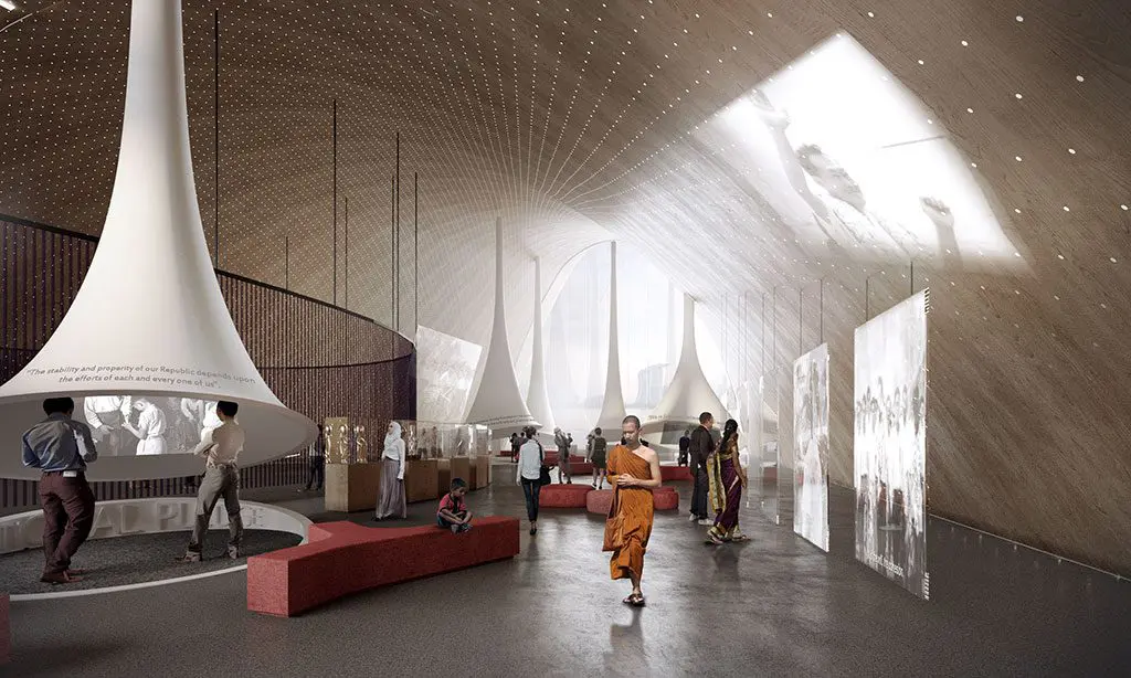 El lugar escogido para el proyecto plantea desde el primer momento la necesidad de construir un edificio singular, capaz de atraer al público, de generar recordación y de enaltecer los valores de una nación. La respuesta la encontró Taller de Arquitectura de Daniel Bonilla en la idea de traer las montañas, (tan singulares de los pueblos de aquellos que se unieron para crear Singapur) al frente del agua, crear un “Nuevo Horizonte” para el orgullo y disfrute de sus habitantes y visitantes.