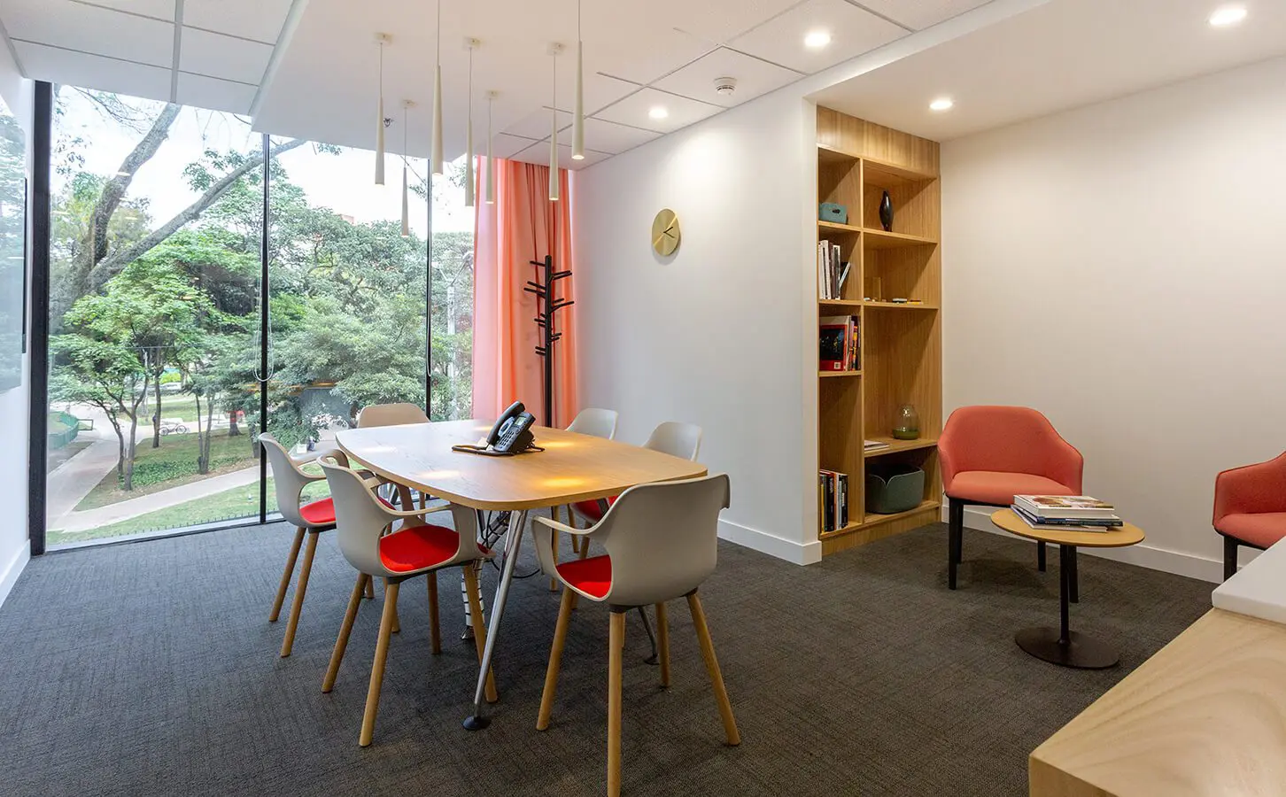 En su sede en Bogotá proponen espacios vibrantes y luminosos, propicios para el trabajo y la interacción, a partir de grandes ventanales y mezclas de blancos con colores pastel, complementados con texturas naturales como la madera o la fibra.
