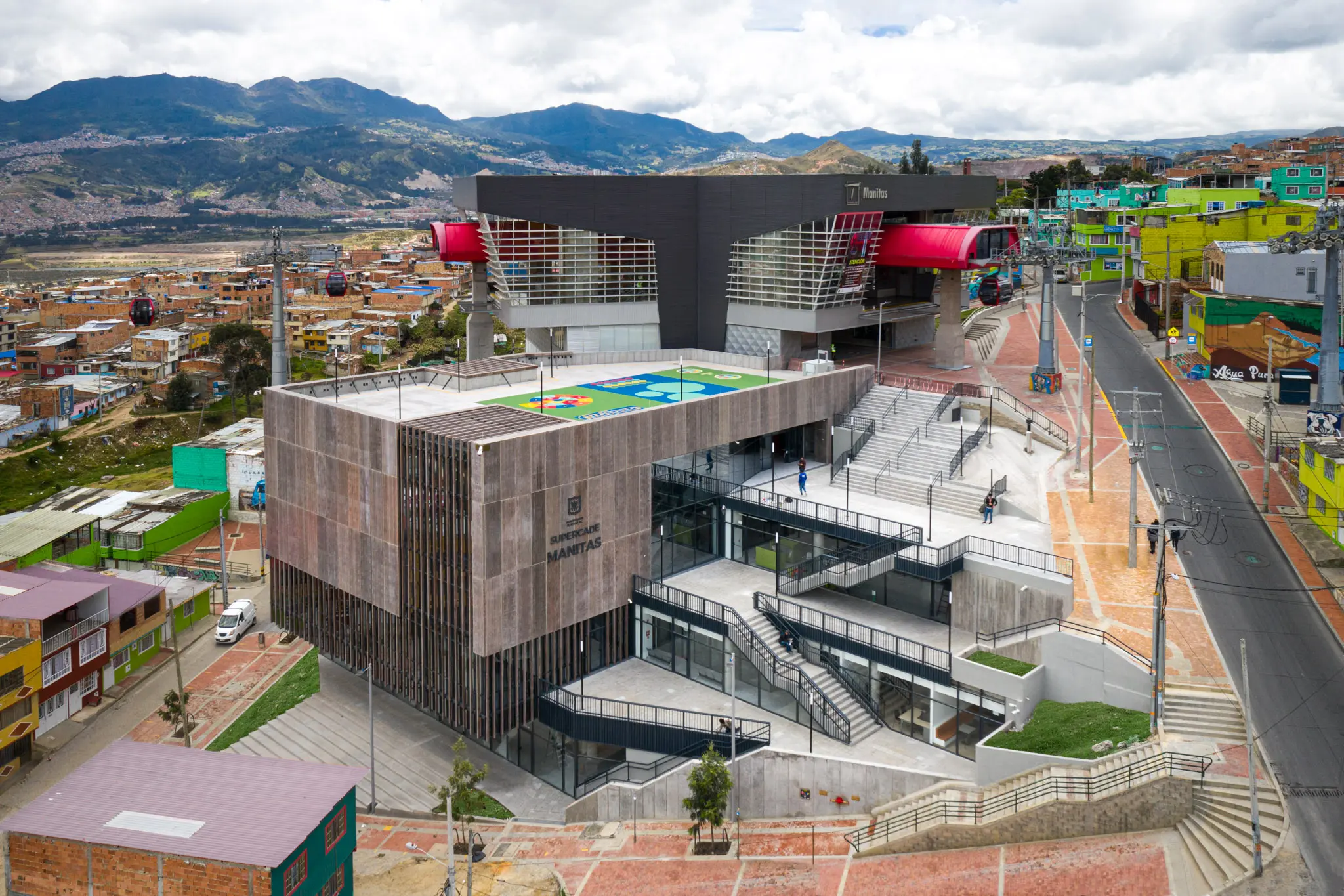 El SuperCADE Manitas tiene una gran terraza de espacio libre, pensada para practicar deportes y actividades de recreación. Adicionalmente, cuenta con ingreso directo desde la estación TransMiCable Manitas a la rampa de acceso y ascensor para personas con discapacidad.